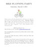 | Saturday March 05, 2022 | ![]() | Bike Season Planning Party 3:00 pm, Shorewood Main dish and beverages provided Please bring $2 per person, a side dish, and your ideas for bike trips you are willing to run | John Stiefel Patty Fitzgerald |
