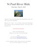 | Thursday May 12, 2022 | ![]() | St Paul Mississippi River Ride (12 or 18 mi RT) Meet 9:30 am, Ride 9:45 am Wabun Picnic Area at Minnehaha Park 4655 46th Avenue South, Mpls Picnic after the ride Bring a chair, and your own food & beverages | Jerry Barnard Marilyn Barnard |