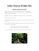 | ## Cancelled ## Wednesday November 09, 2022 | ![]() | ## CANCELLED ## Old Cedar Avenue Bridge Hike Minnesota River Valley National Wildlife Refuge Meet 10:45 am, Hike 11:00 am Old Cedar Avenue Bridge parking lot 9500 Old Cedar Ave S, Bloomington Lunch after at TGI Fridays by MOA 2201 Killebrew Drive, Bloomington | Linda Heintz |
