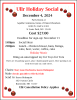 | Wednesday December 4, 2024 | ![]() | Ullr Holiday Social 1:00pm Social Hour, 2:00pm Lunch Chicken breast, ham, fixings, wine, beer, water, coffee, cake Party Room at Aquilla Commons 8200 W 33rd St #302 St Louis Park, MN 55426 Cost $27.00, Deadline for sign-up: November 15 Bring an unwrapped toy for Toys for Tots | Mary Jane Hochstein, Karen Holmquist |