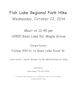 | Wednesday October 29, 2014 | ![]() | Meet 12:45 pm 14900 Bass Lake Road, Maple Grove Late lunch / early dinner TBD at hike | Barb Kolbe Pam Anderson |