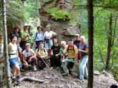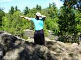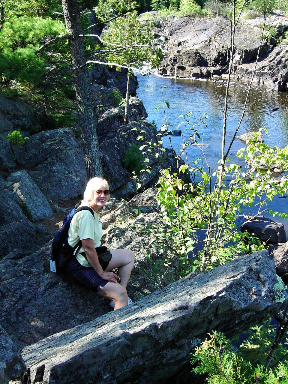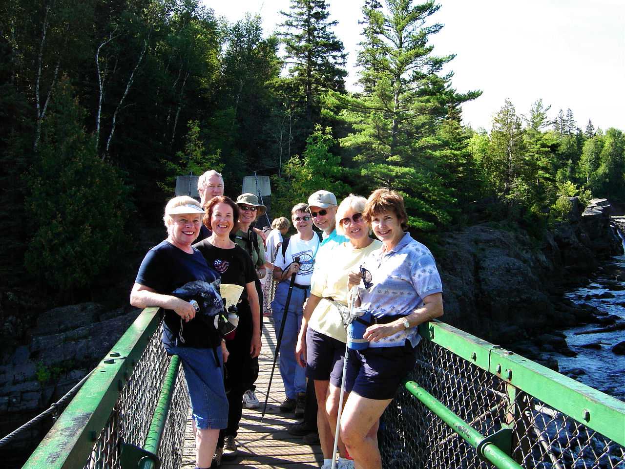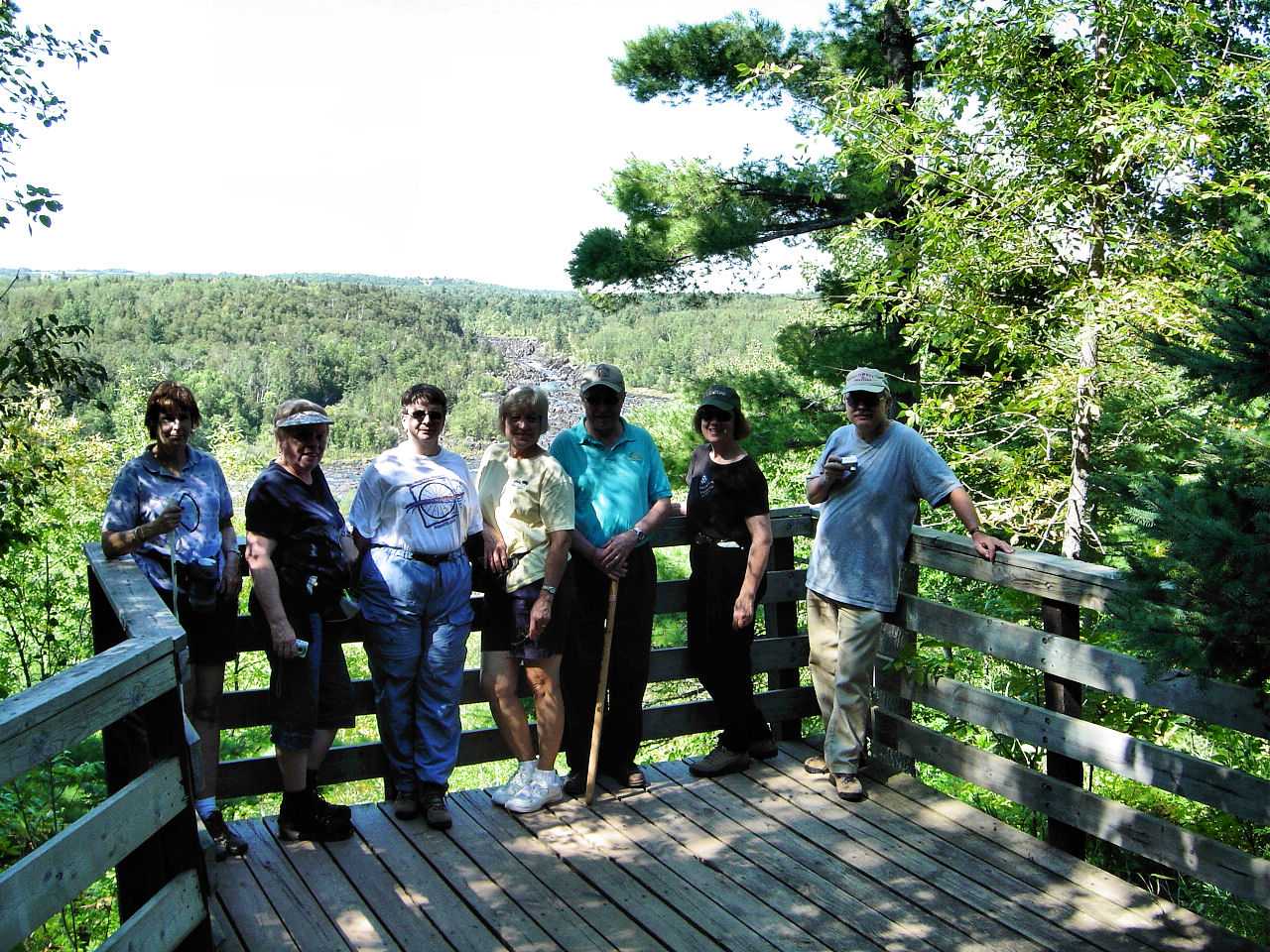 The first day we hiked the Split Rock River loop of five miles. Turned around talking while walking on the rugged up and down trail, proved to be a painful lesson as this leader caught her toe on a root, and went sailing through the air. Luckily, I was able to hike out without embarrassing myself further. As we finished hiking with time to spare, (Cheryl Ostlund gets the speedy hiker award for finishing first ) some of the group went shopping, while others took a hot tub and swim in the pool, or played mini golf. That evening a group dinner at Pizza Hut with a variety of pizzas and salad bar was plenty filling.