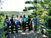The second day we hiked the Cove Point Loop over five miles of climbing over 700 feet in elevation. We thought it to be a harder hike the previous day, however, the gradual climb was actually easier than the ups and down of the Split Rock River Loop. Part of the group led by Joella Wilson spent the day exploring the Tettegouche State Park trails. They climbed to Mic Mac, an old logging camp, and hiked out to Shovel Point on the shore of Lake Superior. Others led by Jan Staples went birding at Eagle Ridge outside of Duluth. More relaxing and shopping followed the hikes. We enjoyed a group dinner that evening at the Black Woods Restaurant in Two Harbors.