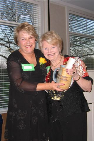As several raffle items were being given out, a special guest arrived from Scandihoovia, MN. Lena, Ole’s wife, shared several stories about life up north with Ole, Sven and friends. VERY FUNNY!! The evening continued with dancing to the terrific music of the American Flyer Band. Co-Chairs Colleen Barden and Vicki Johnson felt the Banquet was a great success, and have booked the same location for next spring.