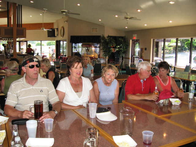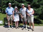Three teams tied for 4th place. A putt-off resulted in Dave Shave's team including Kay Joyce, George Graham, and Jan Shaffer taking the $32 4th place money with John Egan, Barb Kolbe, Jim Habeck, and Dian Parnell winning the $24 fifth place. Jan Cady’s team including Charlie Peterson, Carol Schwebach, and Vern Brown took last place in the tournament. They were each awarded a sleeve of balls, so they could begin to practice up for the next year.