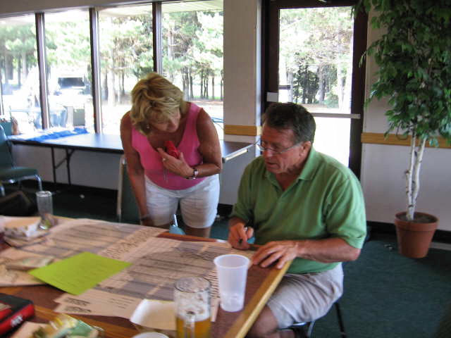 The $20 Gift Certificate at Joe's Sporting Goods went to Colleen Barden for the longest drive on hole #8 and Dan Rymer for the longest drive on #6. The $20 longest drive prizes on the back nine was won by Peggy Blahhoski on # 17 and Gus Bjorklund on hole #11. $20 prizes were also won by Joella Wilson by getting closest to the pin on # 5, Wally Krake on hole # 4, Judy Bergan on number #12, and Larry Miller was closest to the pin and hole #13. John Egan won a litter of wine for making the longest putt on our final hole which was #9.