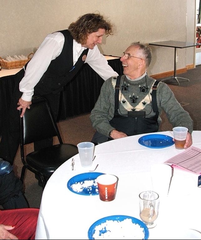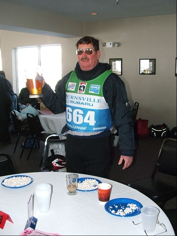 Poor Mary Ellen, she’s the only lady on the Raiders. Thankfully Guys and Dolls racers Sylvia Scott and Sarah Bauer come over to our table and give her moral support. Mary Ellen is the top racer in her age group.