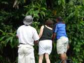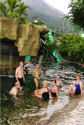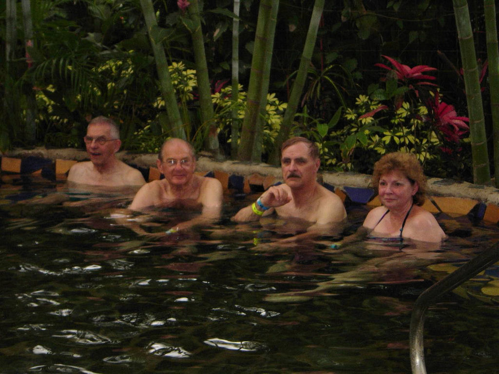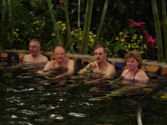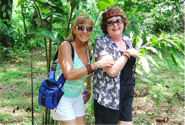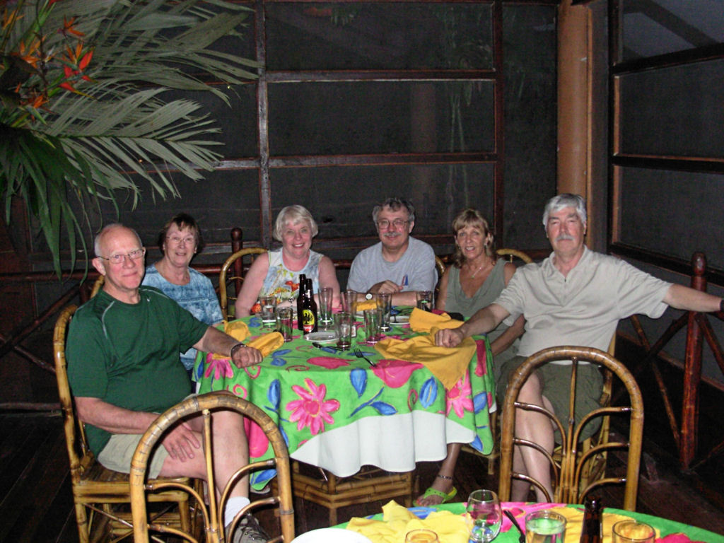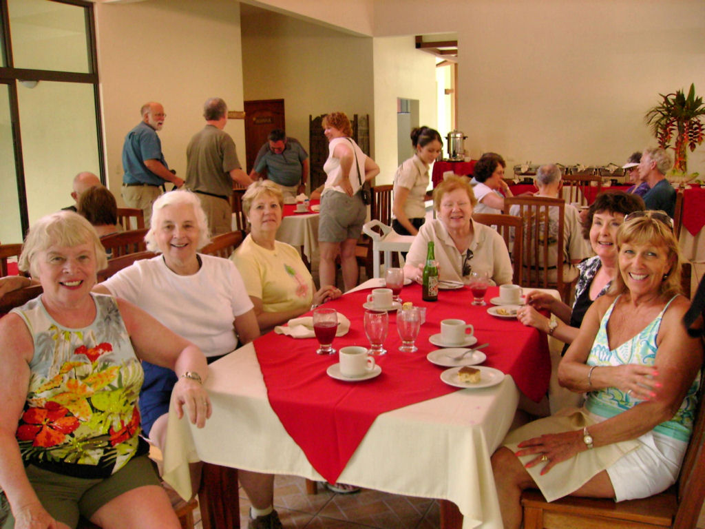 We spent two nights at the Pachira Lodge in Tortuguero National Park. Monkeys were literally hanging from the trees outside our rooms. They “howled” us awake each morning. The rooms were “rustic” but in a beautiful jungle setting. Our guides made sure that we saw the animals they were pointing out on our canal trips. They had Gloria just about climbing a tree to see a J.C. lizard. We danced the second night to a three piece band. We learned the “banana” dance (yes, use your imagination) from the wait staff from the restaurant. The dance ended in a limbo contest. Paul, our guide was great!! Judy Bergan won the contest and downed a shot of tequila. Eight of us (Barb K, Karen H, Jean B, Jan I, Sherrie M, Cathy C, Nadine C, and Joella W) continued as dancing ballerinas in the turtle shaped swimming pool. Marty Wilkes got chased out of the pool by a crab that eventually crawled up by Sherrie and Cathy.