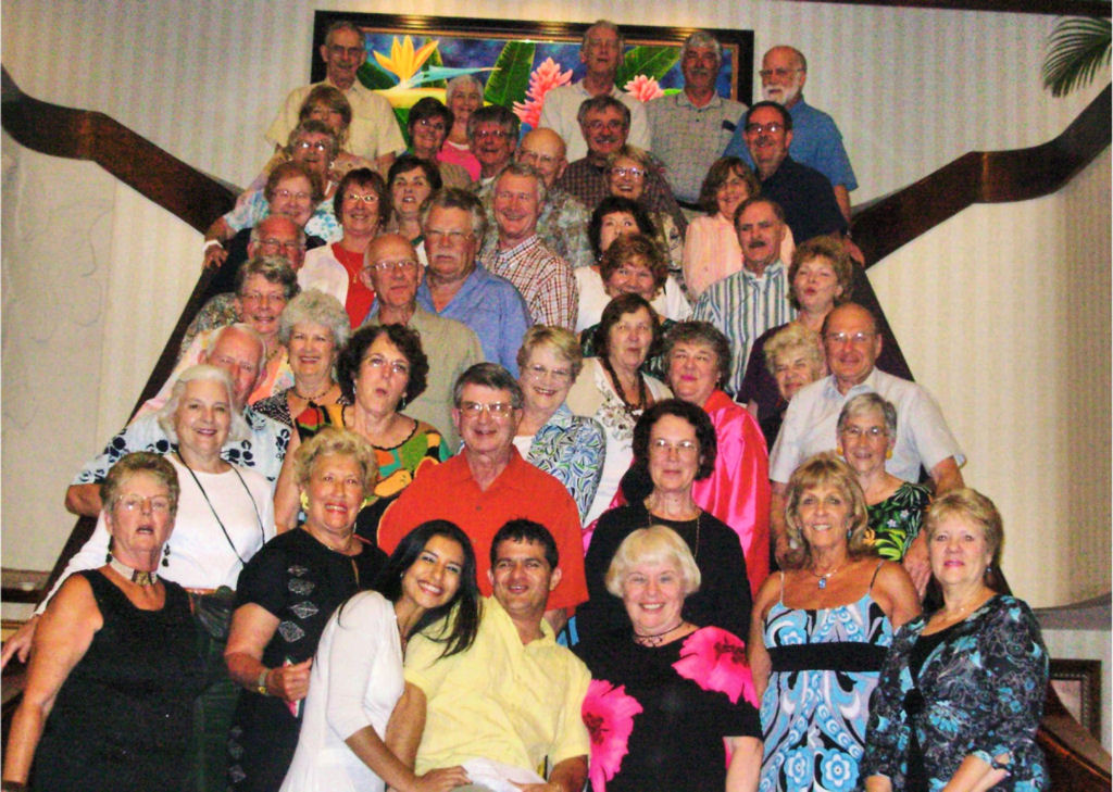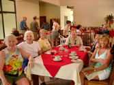 We traveled to the town of Fortuna where we stayed two days in a beautiful setting with a breathtaking view of the Arenal Volcano. We toured a canal up to the Nicaraguan border. Jerry Schuster stayed behind to try “zip lining” through the canopy from platform to platform. We moved onto the Pacific coast to the wonderful Doubletree Resort by Hilton at Puntarenas, an all inclusive hotel that had many pools, Spanish and dance lessons, water aerobics and much more. Only ten of us ventured on the trip to Manuel Antonio Beach and Reserve the next day. The rest enjoyed a relaxing day at the resort (all this having fun was very tiring!). Joella, Lee, Jerry, Joyce Butler, Jim T, and David L took a hike through the park to see the white faced monkeys. Jan I, Sherrie, Barb K and Karen played in the ocean. Sherrie and Barb lost sunglasses while jumping in the waves. Everyone got plenty of sun, and red faces were seen at dinner. As we departed on our way back to San Jose, we stopped in Sarchi to see the handpainted ox carts and colorful handcrafts in this town. We also stopped in Gracia at a church made of metal and shipped to Costa Rica from Belgium. The last stop of our vacation was the Brit Coffee Plantation. We saw a humorous play about the history of coffee, and had the opportunity to have some samples. Jim T played the best man in a mock wedding as a part of the coffee play. We ended the trip back in San Jose. A delicious farewell dinner was bittersweet! We hated to say goodbye to our new friend, Paul, and the beauty of this country.