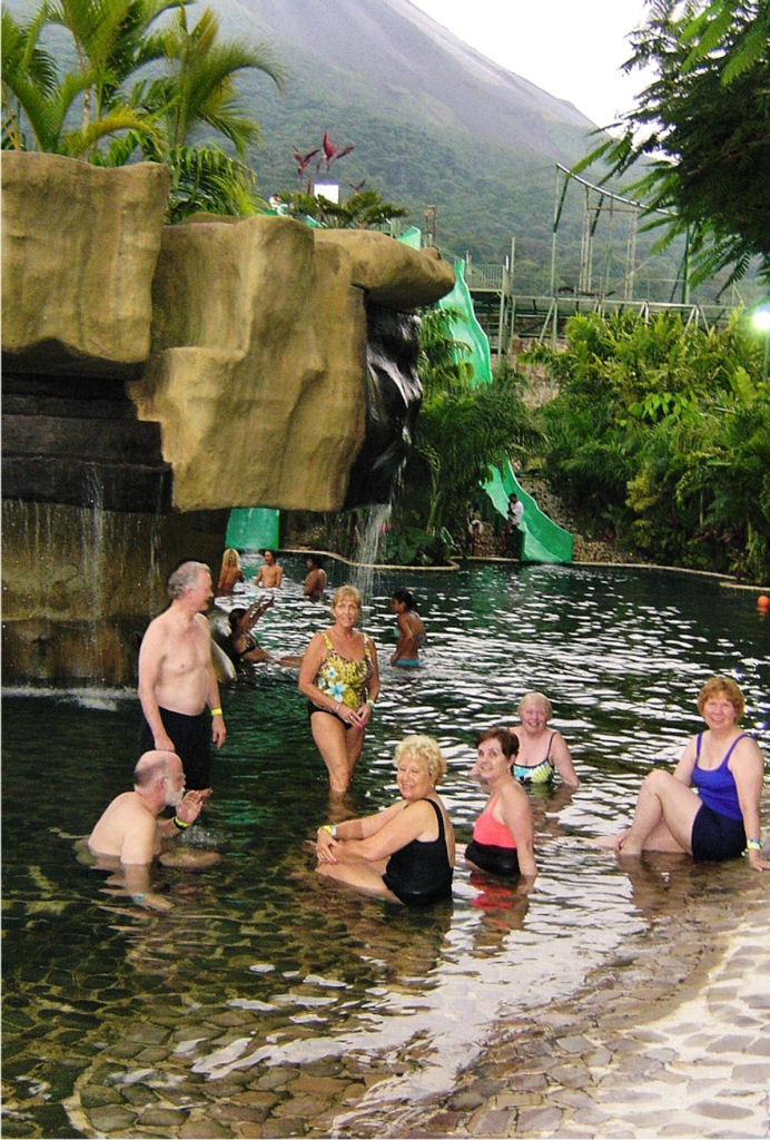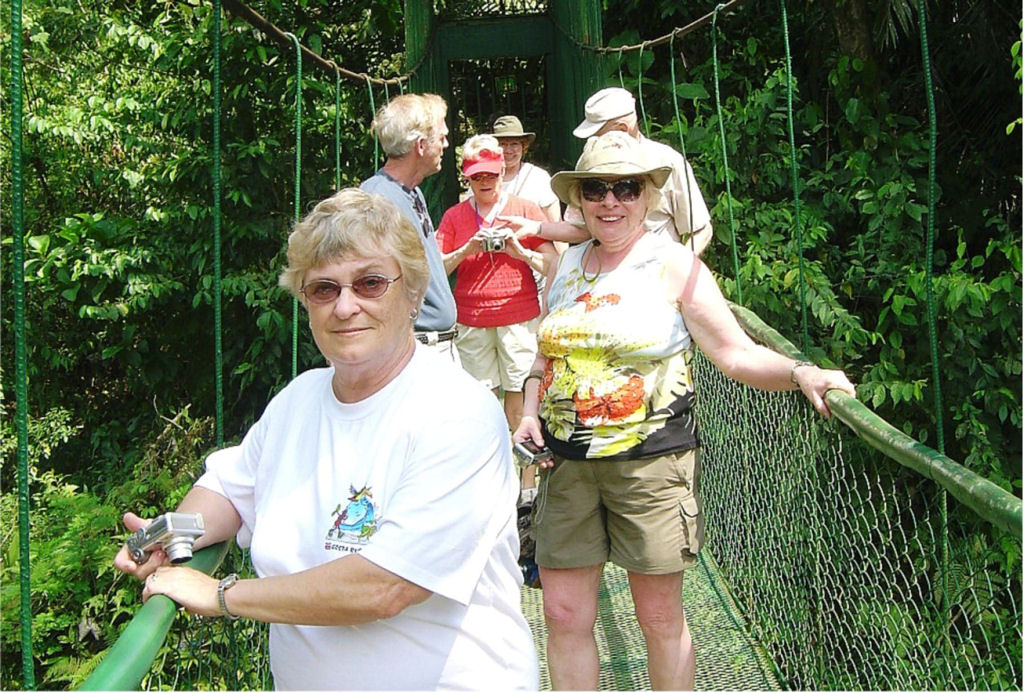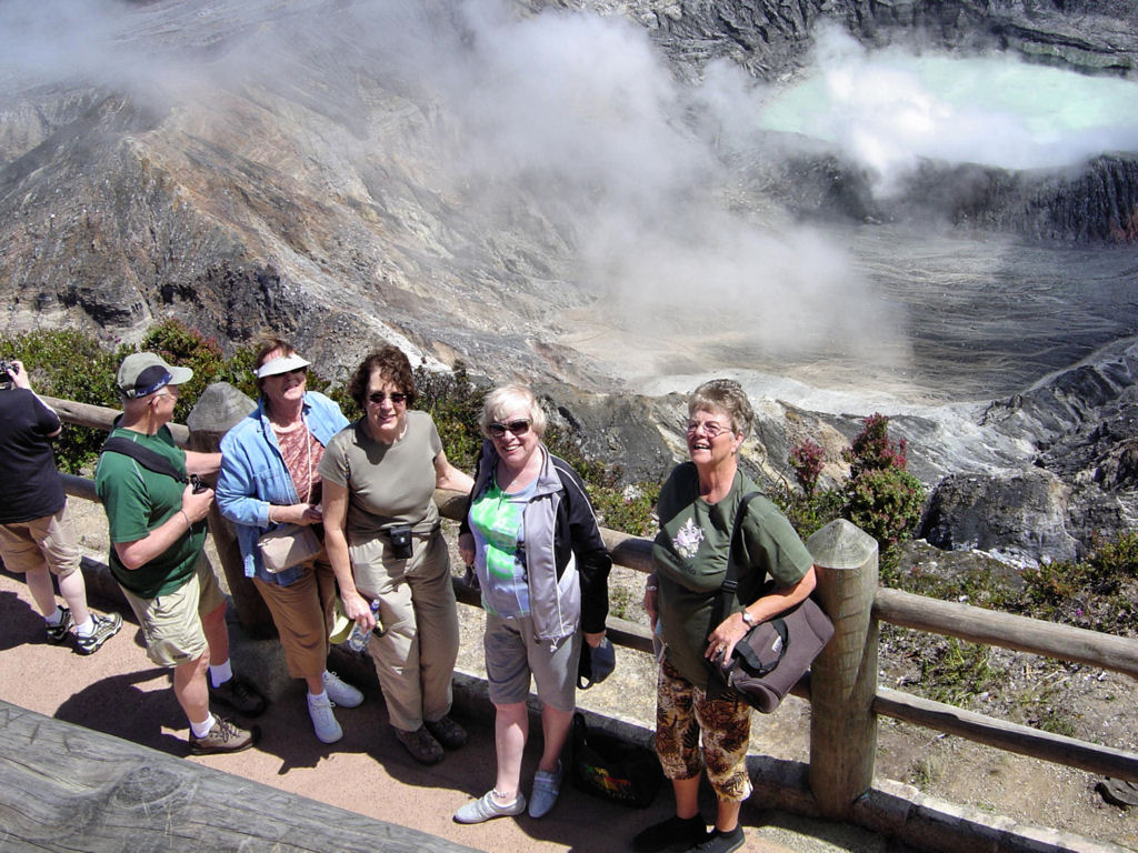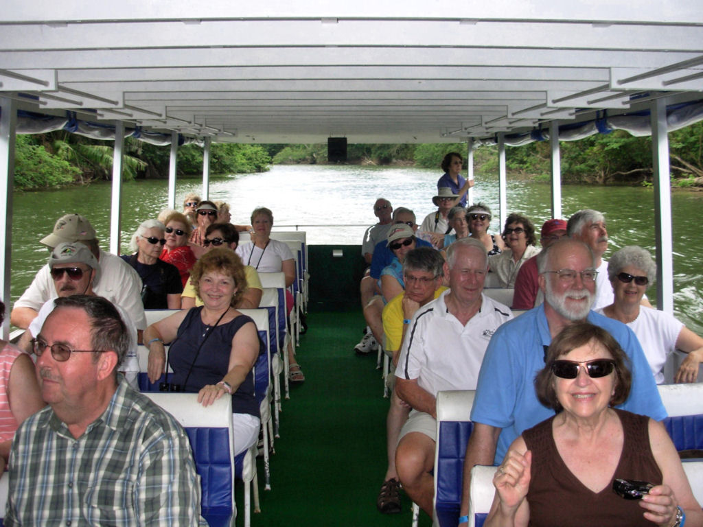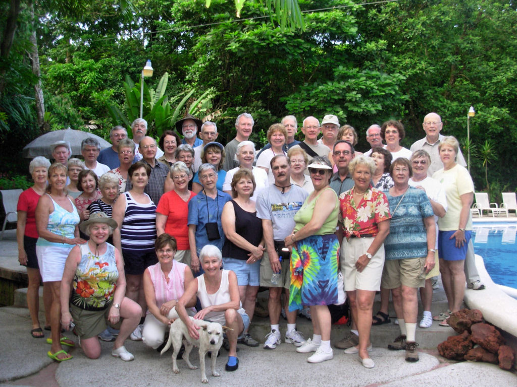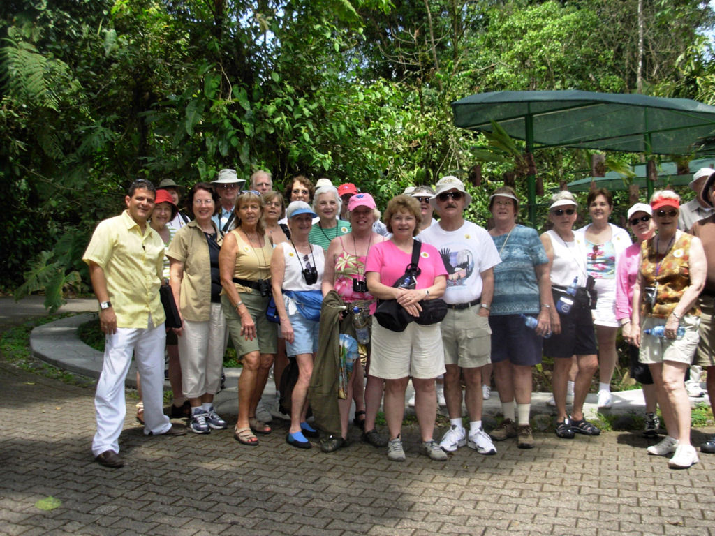Puravida, or Life is Good… Life was (is) very good in Costa Rica! With a group of forty-three ULLRS, we filled a motorcoach and toured from the bustling city of San Jose, to a canopy ride in a rainforest, to viewing smoldering volcanoes, to boat rides along canals searching for monkeys, birds, caimans, and J.C. lizards, to relaxing in hot springs, beautiful pools and on black sand beaches, to nature walks, to visiting a coffee plantation and a hand painting ox cart factory, and food, food, food, shopping, shopping, shopping.