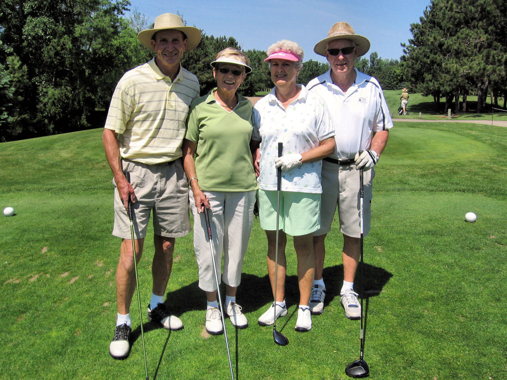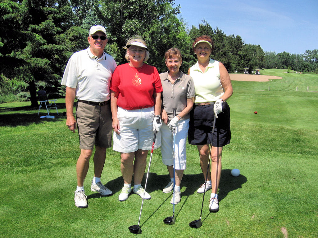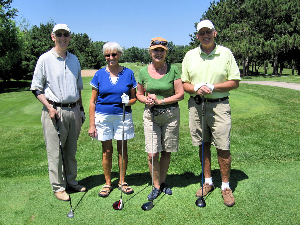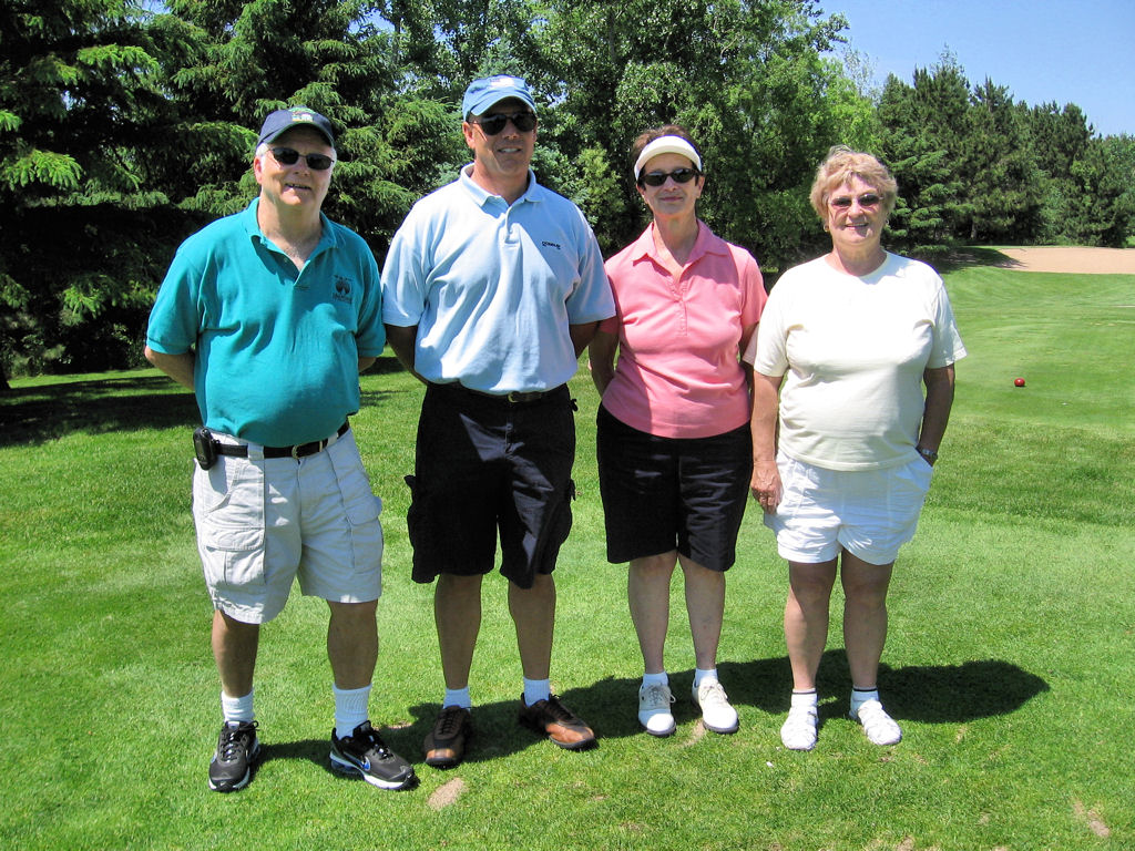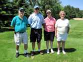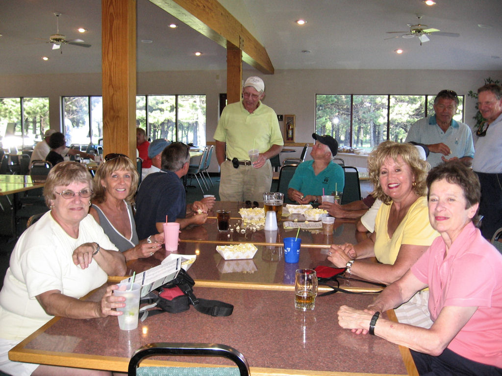 Individual prize winners was led by Jim Habeck who collected $20 for the longest men's drive on hole # 11 and another $20 for the guy getting closest to the pin on hole # 13. Joyce Rooney won $20 for the gal getting closest to the pin on hole # 12 and Joyce Bolt won the same on hole # 5. Ron Dittmer won a $25 gift certificate from Joe's Ski Shop for the longest drive on hole # 6 and Joanne Cramer won the same on hole # 8. Charlie Peterson received $20 for being closest to the pin hole # 4 and Joyce Lahr won the $20 for the woman with the longest drive on the back nine, hole # 17. Ken Ernst won a big bottle of wine for that putt on the final hole.