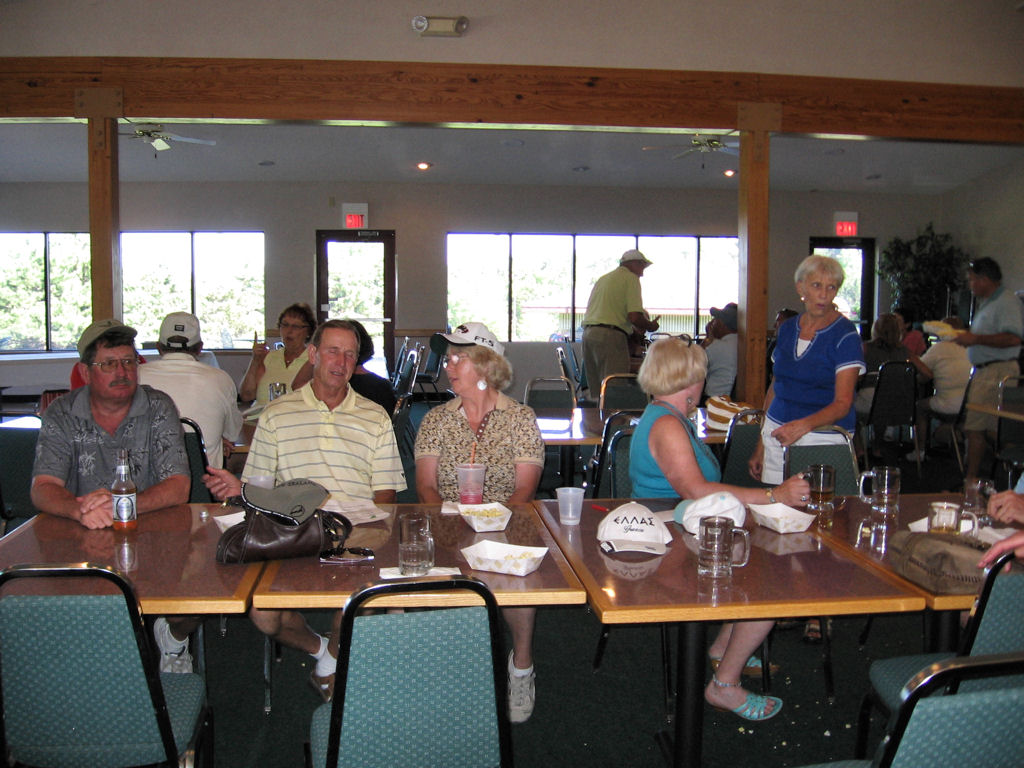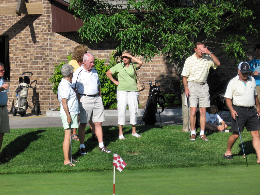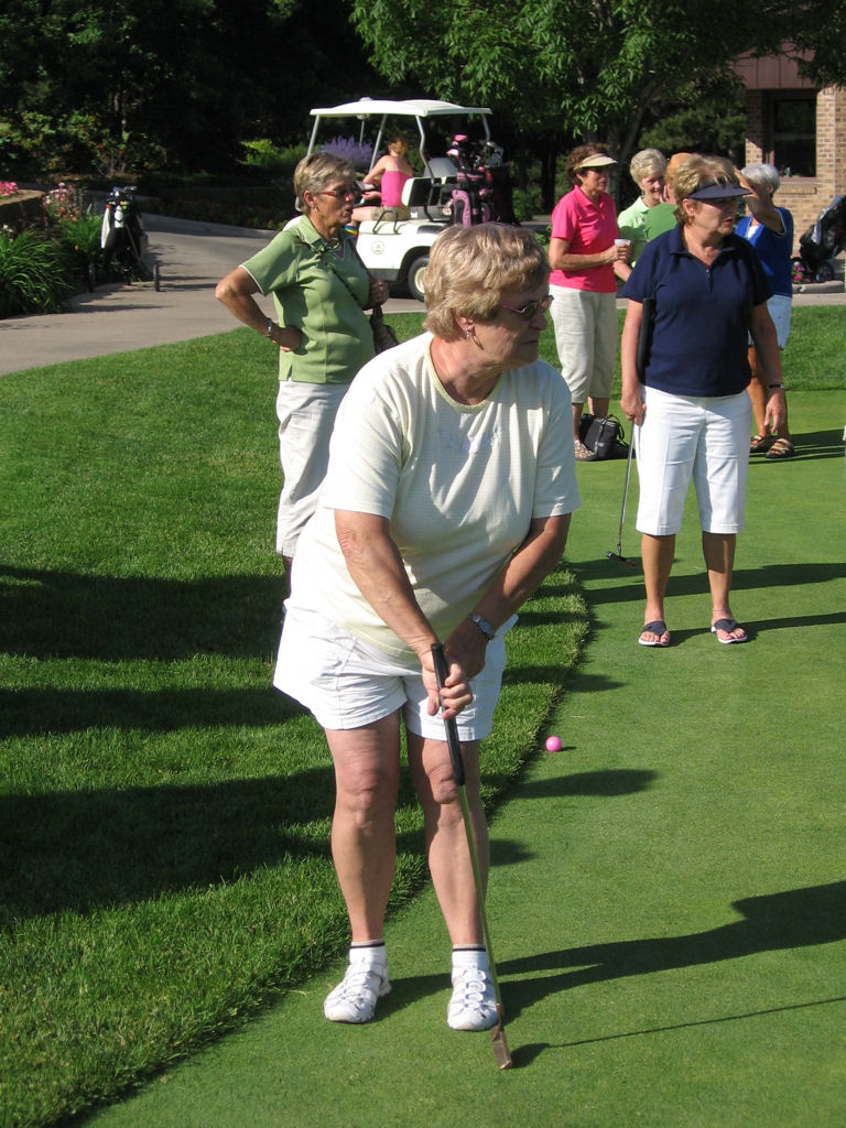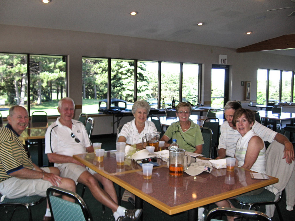 Money was paid out to the top 6 teams. Joyce Bolt's team consisting of Harry Olson, Peggy Blahhoski, and Charlie Peterson finished 3rd at one under, 61. Another putt-off was required to determine 4th & 5th places with Joanne Cramer's team including Carol Schwebach, and Joyce & Bob Lahr coming in 4th. The 5th place team was captained by Judy Bergan and included Skip Jobe, Mary Ellen Goriesky, & Dean Shawbold. The two teams came in at even par 62. Karen Clark's team finished 6th at two over 64. Tom Rein, Jean Buchholz, and Roger Chlebecek played with Karen. Members of the team having the highest score each won a sleeve of balls.