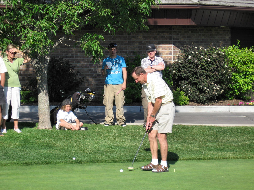 Wednesday, June 18th, was a wonderful day for our Ullr Golf Tournament at Applewood Hills. It appeared that everybody involved had a good time. The winning team for the scramble event was captained by John Rooney. A great, 15 foot, downhill putt on the last hole by Ken Ernst enabled the Rooney team to tie for first with a score of 59, three under par. A putt-off against Dian Parnell's team was decided by another great putt; this one by Joyce Rooney. Julie Ernst was the 4th member of the winning team. Jan Cady, Ron Dittmer, and Roger Hennessey were the other members of the 2nd place team.