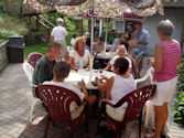 the Green Gables gazebo enjoying the evening and lively conversation on many