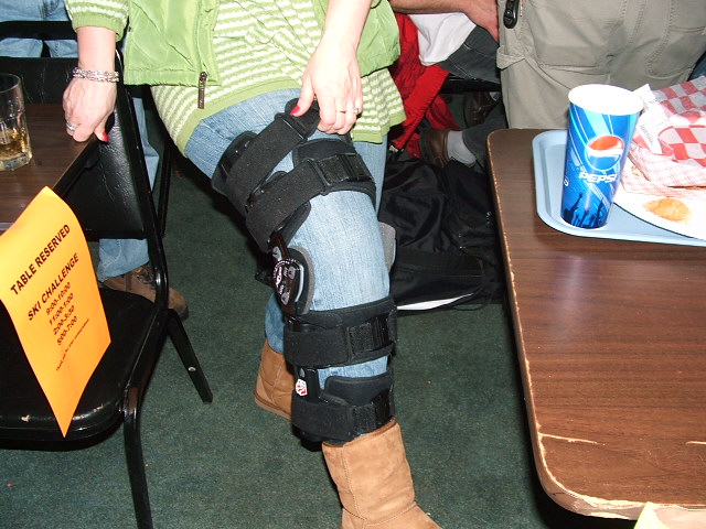 I asked Patty, what she wanted for her team picture, and naturally this is what she chose. She destroyed seven things in her knee. When she went to see the surgeon for the first time he asked her which ones did she want to fix with surgery, and which ones would they let heal their own. Patty is a real competitor, and we just hope her knee will be healed enough so she can be skiing with us again next year. Even though she only had the chance to race three times, she is the fastest lady on the team.