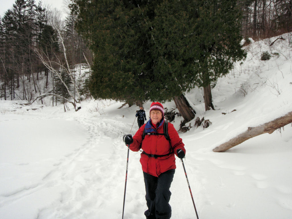 On Friday the true Minnesota winter showed up, and the temperature dropped considerably. Only three brave couples headed back to Spirit Mt. to ski, Jan and Jerry Swanberg, Barb and Marv Miller (new members), and Patty and Bob Rasmussen. The remainder of the group headed toward Banning State Park. We stayed warm following John Egan up and down, in and out, and around and around snowshoeing down to the river and back to the cars. Judy Burich, Jim Habeck, Cheryl Ostlund, and Jerry Schuster glided through the park on their cross country skies. We finished off the day with a lunch at Banning Junction.