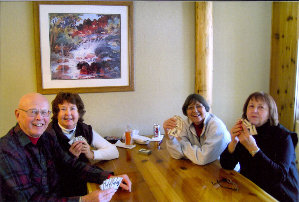We arrived at Giants Lodge at 10:30 PM. After skiing hours on Saturday and Sunday, Sunny, Erl, Kay and Gloria, with Don Devine & Pam Anderson filling in, we had a two-day bridge tournament, that even continued on the bus ride home. There was some good bridge, even some good laughs as Erl reminded us of his Bridge Masters status! Who won? Not sure or don’t remember!