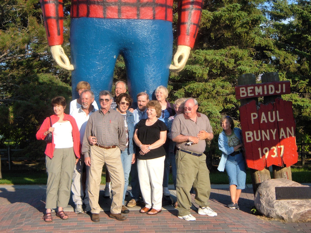 On Saturday a few rain drops did not stop several ULLRs from biking to Lake Bemidji State Park and eat lunch at the outdoor Swedish Festival. Nor did it stop Joe, Barb and Jim from fishing on Grace Lake, boy did they catch a mess of fish - Northerns, huge Pan fish, and even a few Bass. The remaining ULLRs hiked the Bog Trail at Lake Bermidji State Park where we saw many wild flowers even a few Lady Slippers, but not the Showy Pink Lady Slipper our state flower. We ended the day with a mouth-watering dinner at Sparkling Waters, pictures with Paul and Babe, and ice cream at Coldstone.