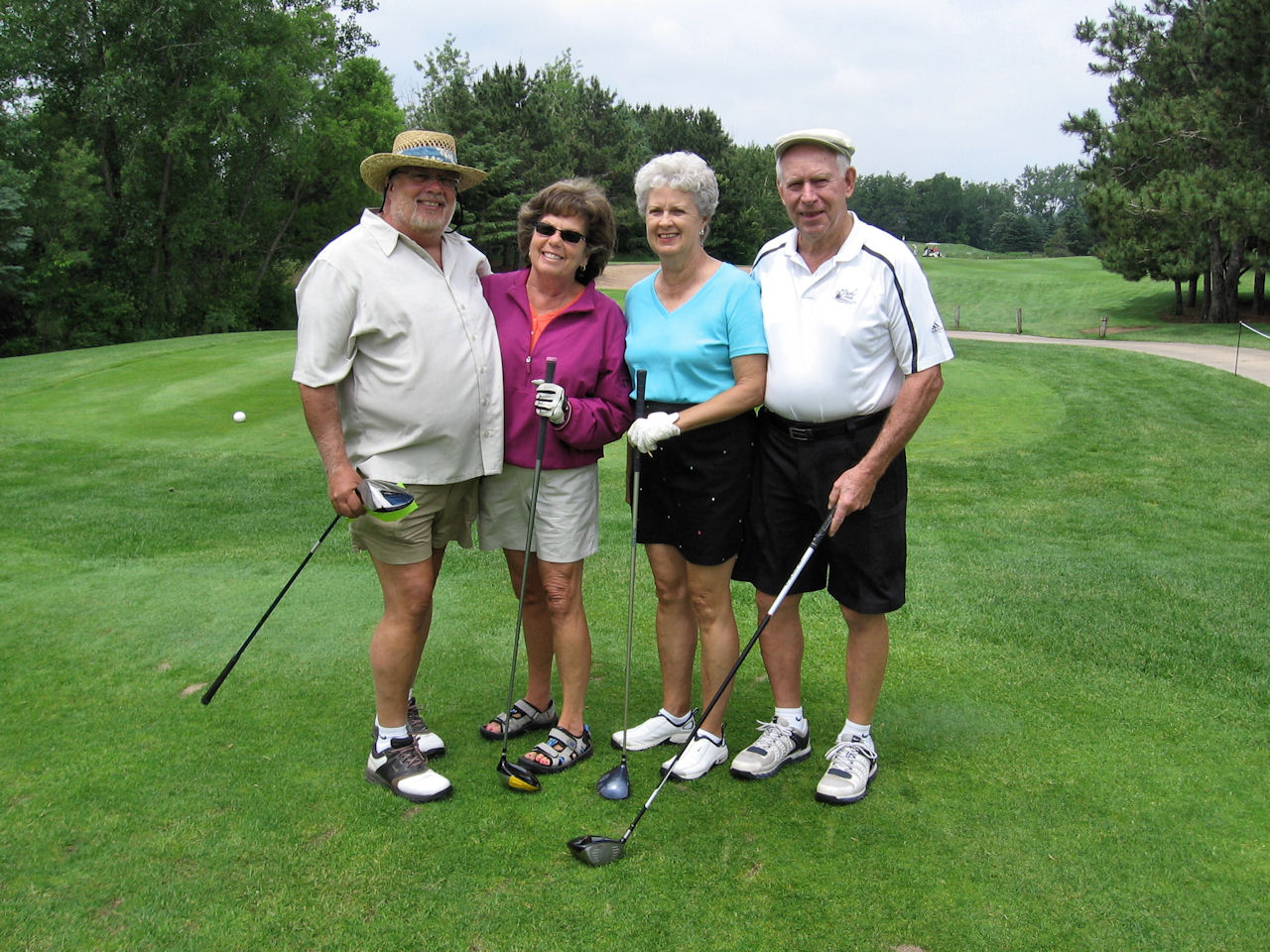 Wednesday, June 17th proved to be an ideal day for some good golf at Applewood Hills. Jan Cady's team shot a 5 under 57 in this scramble format to capture the first place money. Roger Hennessey, Pam Anderson, and Ron Dittmer were the other members of the four person winning team. Barb Kolbe's team consisting of Jim Habeck, Joella Wilson, and John Egan was only one stroke back. Another one stroke back was Joe Fischenich's third place team including Barb Carpenter, Dan Rymer, and Sylvia Scott. A putt-off was required to settle the 4th and 5th place finishers. John Rooney from Joyce Rooney's team nosed out Tom Rein from Dean Shawbold's team. Kathe and Frank Magadance were the other two members of Rooney's 4th place team and Shari Kopeski and Sandra Shearer were the other participants on Shawbold's 5th place team.