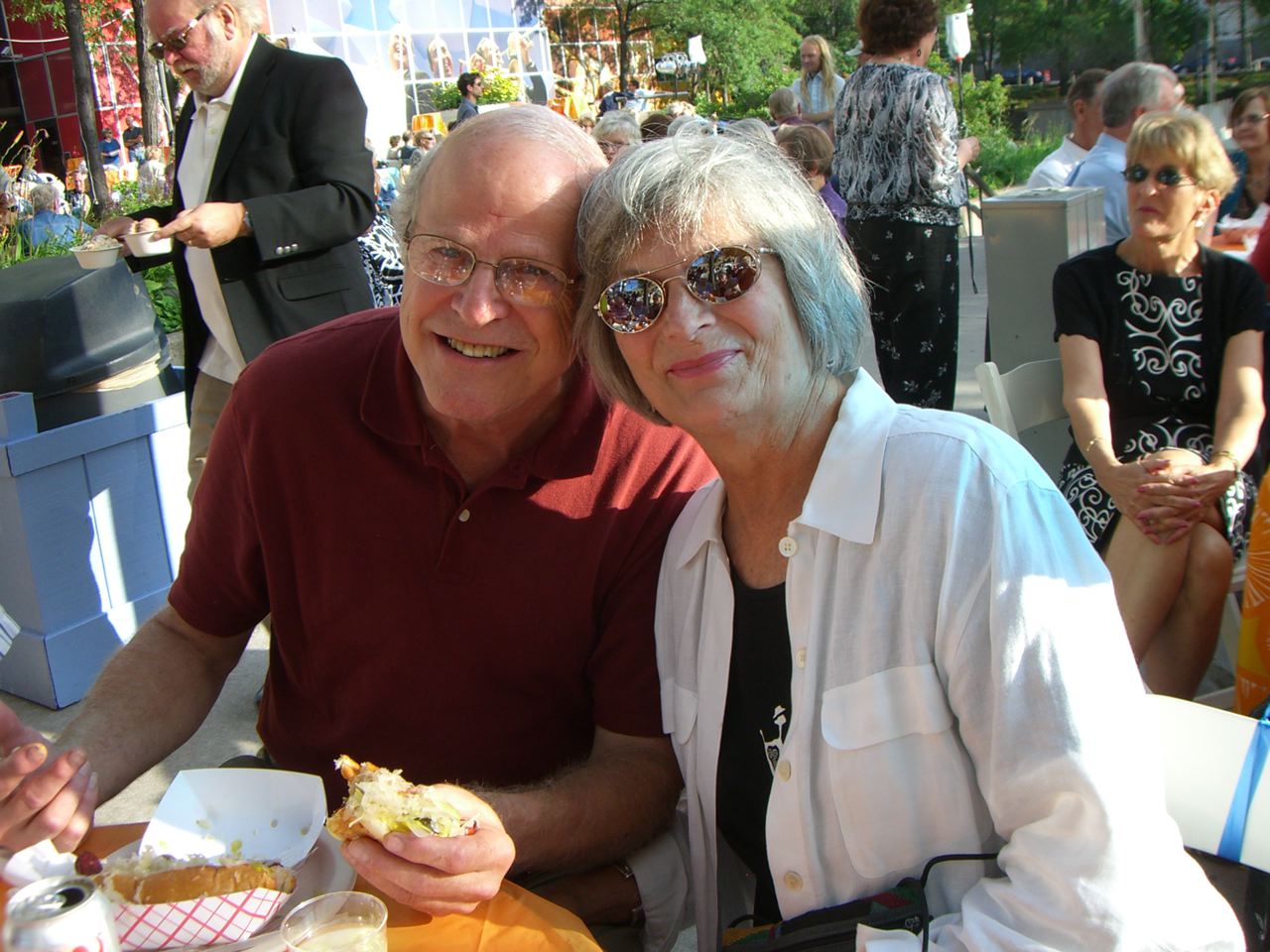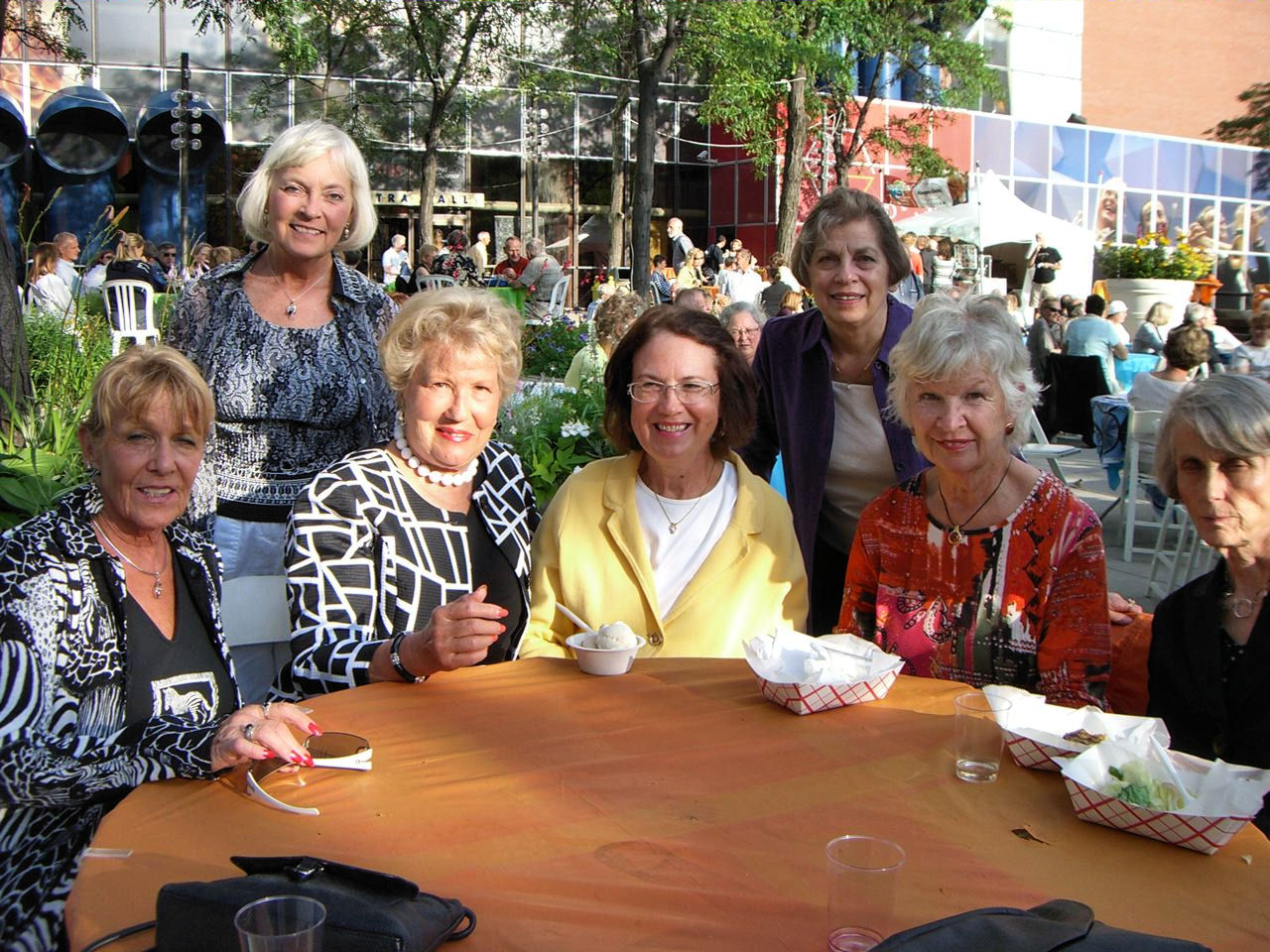 Again, ULLRs had a fun evening attending a glorious concert at Orchestra Hall. We started out on the Plaza with Carol and Sunny Zenk fighting high winds as they tied balloons on enough tables to seat 50 ULLRs. New member Connie Page had house guests and did not make the evening, so we only needed seats for 49---yes, 49! Members congregated on the Plaza enjoying beer, wine, hot dogs and burgers.