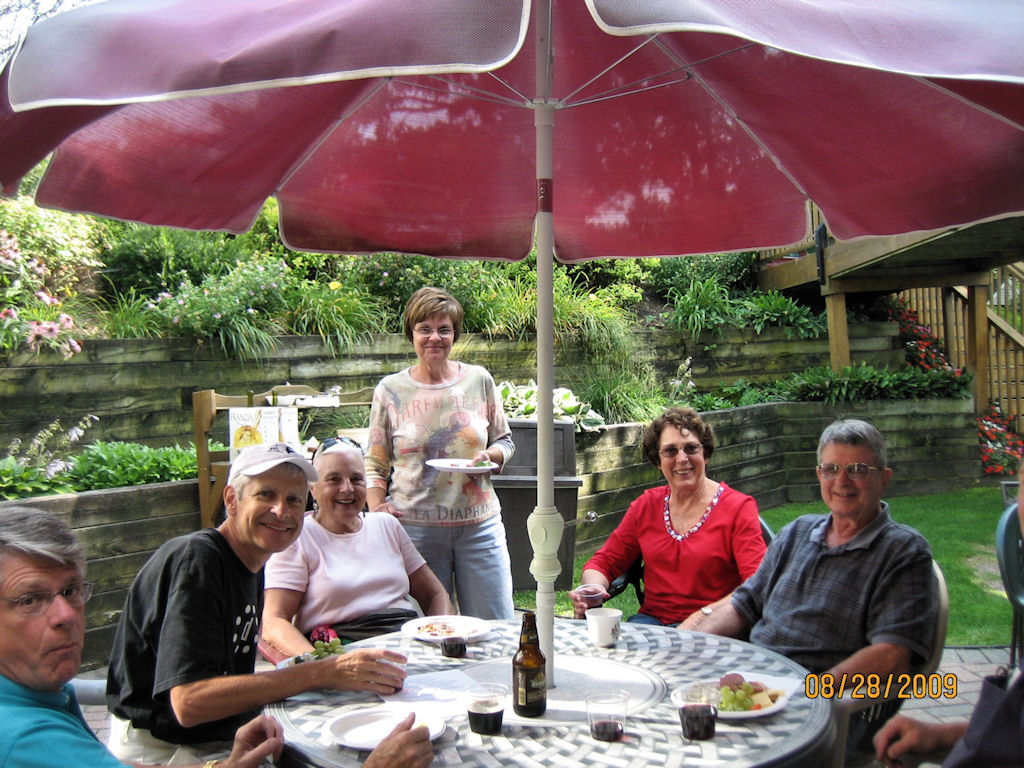 Friday evening’s happy hour (or actually three hours!) was cut “short” by a passing rain cloud! “Iowa Jan” Hotvedt made a very welcome surprise visit. Thank you Sunny Zenk for the summer sausage and cheeses, and rhubarb wine from the Lanesboro Winery. Saturday evening’s happy hour moved on to Old Village Hall for excellent dinners, followed by the play “The Odd Couple” at the Commonweal Theatre. There was not an empty seat in the house for this talented, funny version of the popular Neil Simon play.
