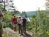 Saturday morning after breakfast, the majority of the group motored down to Tettegouche State Park to hike a 5.5 mile loop to Mic Mac Lake and Mt. Baldy (at the top was the only place all weekend that I had cell phone reception). Jerry Swanberg led the group up and down through the woods, stopping at many scenic overlooks, until we came to the campground area. We had picnic tables where we could munch down our lunches and rest our weary legs. There was even an outhouse!