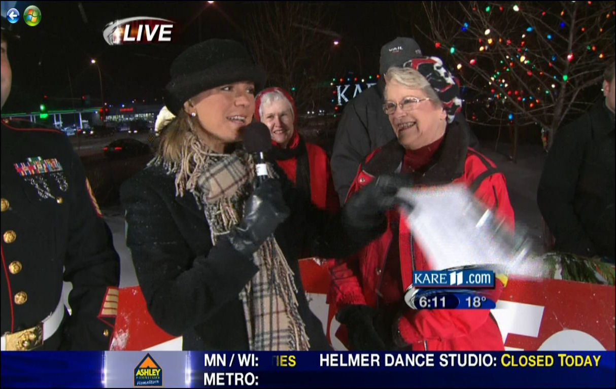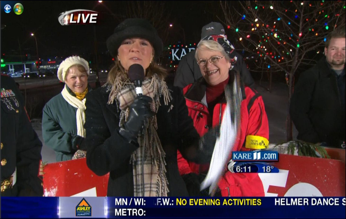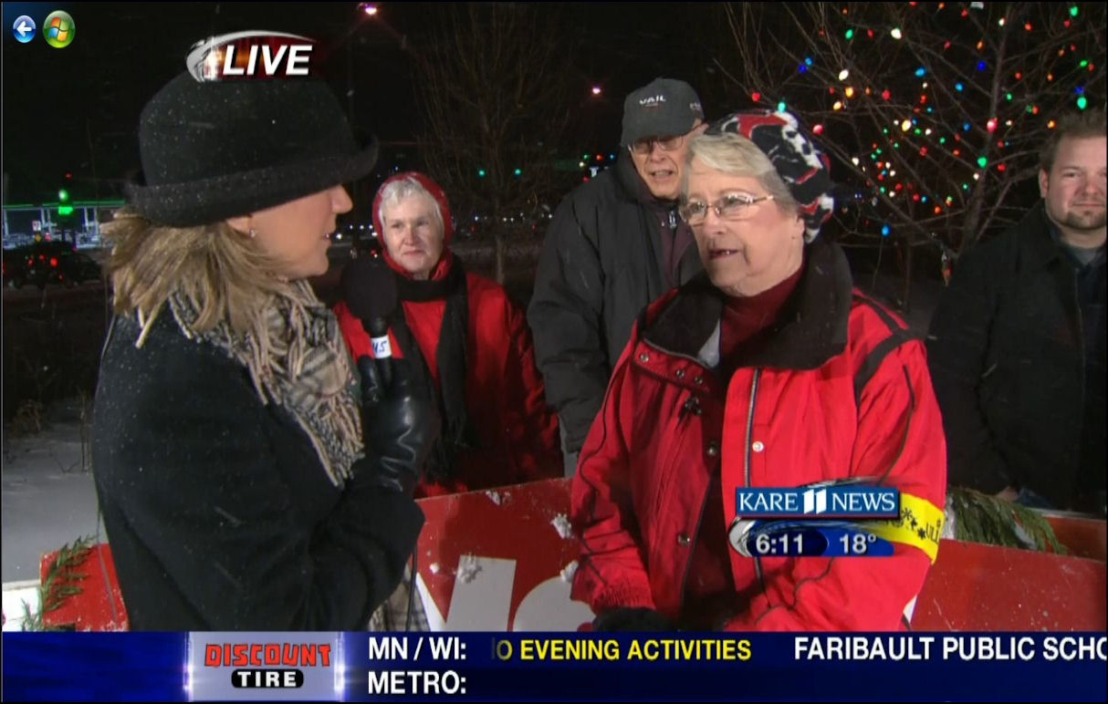 In spite of everyone allowing extra travel time due to the weather to get to KARE11, Diane and Erl arrived with only minutes to spare, and Nancy Sand arrived a few minutes too late but on time to take some photos. President Diane Erlandson represented ULLRs during the broadcast.