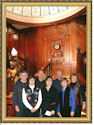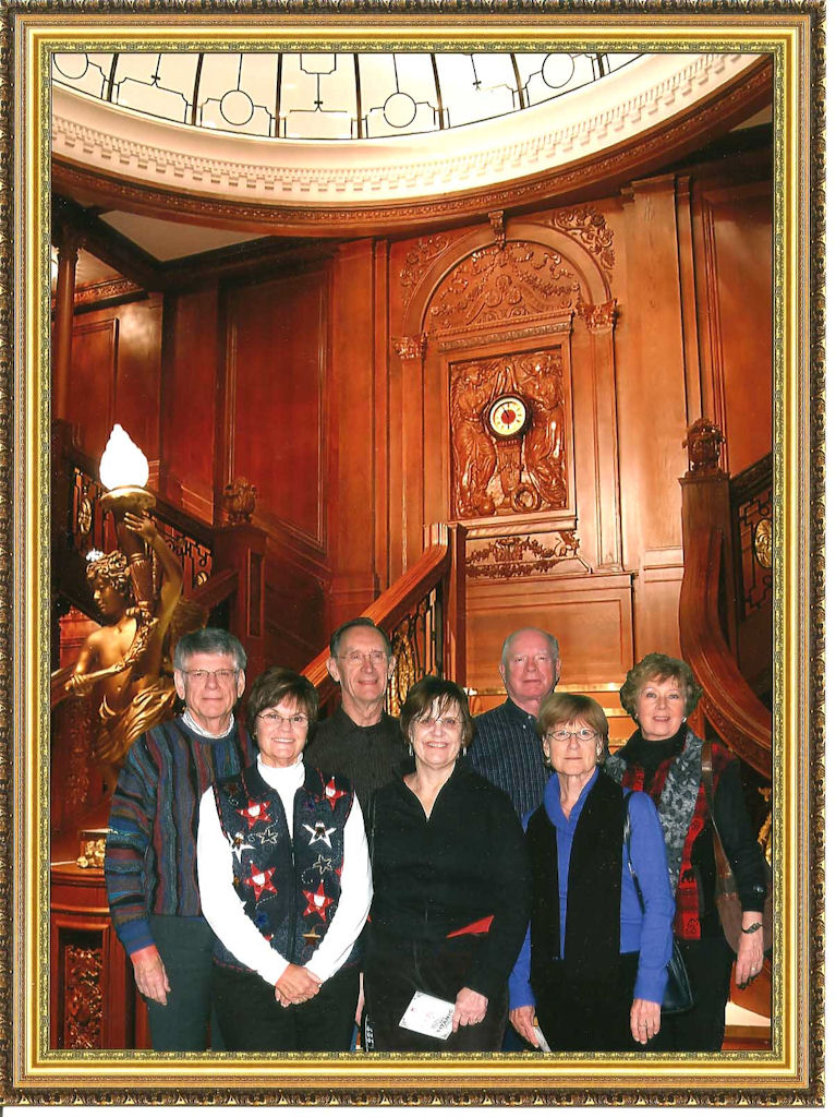 Standing on the Grand Staircase of the Titanic are the intrepid survivors: