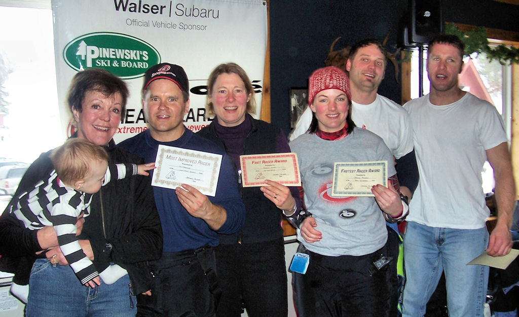 HeavyGlare.com Racer Ed Wakefield -most improved male; ULLR racer Tom Chapen’s daughter Evelyn Duval; League pace Setter Danielle Dziedzic; Eric Yost; Eric Anton.