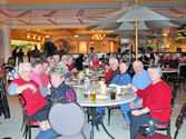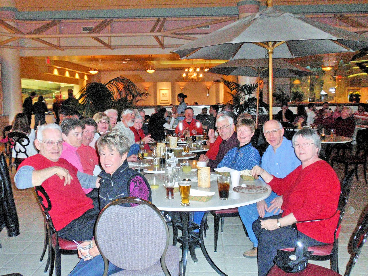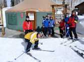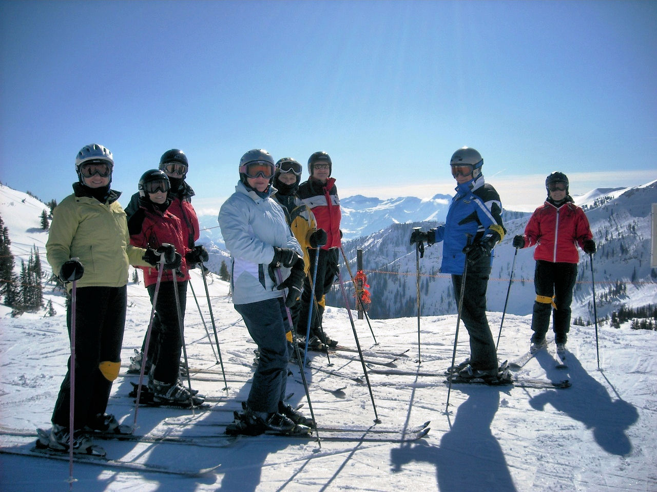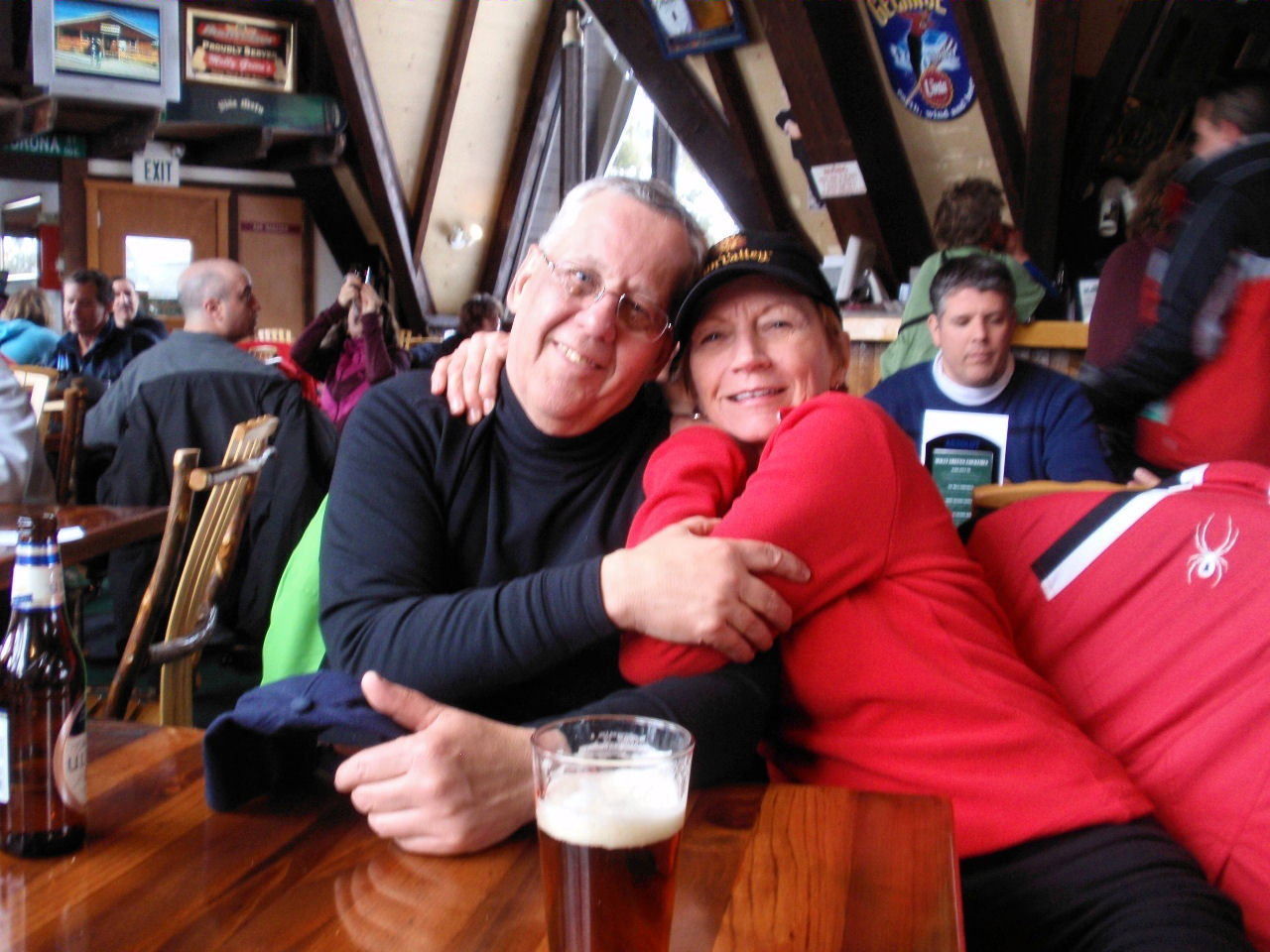 Social highlights: Our Welcome Party the first evening held in the atrium of the SLC Embassy Suites (our home for the week) was a great opportunity to start expanding our friendships. We broke away from the traditional Pizza Party, and enjoyed a sit down dinner of Lasagna, Caesar salad, etc. After dinner, most of us stayed to watch the last quarter of the Superbowl. How spoiled we all became with gathering every morning for a made-to-order breakfast of our choosing and a “Happy Hour” served every day from 5:30 to 7:30 pm – each at no extra cost to the group. The gatherings each morning and evening proved to be a great way to get to know everyone more intimately and by the end of the week we were all ONE BIG family taking up a lot of space in the Atrium with our tables snaked together with chattering skiers huddled about.
