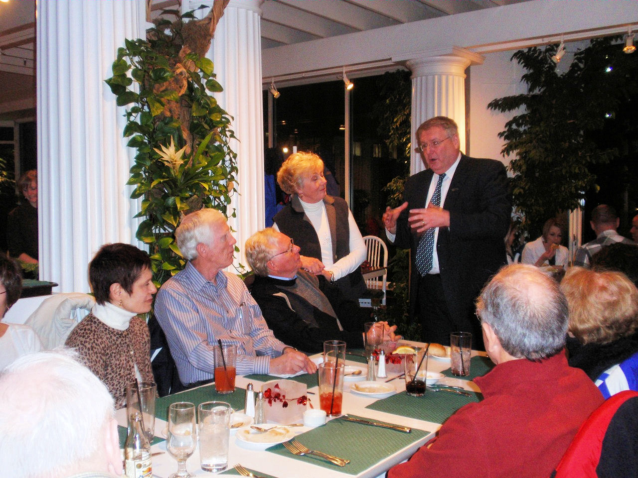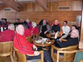 Skiing highlights: All agreed that the skiing was fabulous! We enjoyed three sunny days and 2 powder days skiing Solitude, Alta, Deer Valley, Snowbird and Brighton. On day one, Solitude provided the terrain for warming up our ski legs and getting indoctrinated into the high altitude. The next day Alta introduced us to some very challenging runs and the experience of skiing without snowboarders (we liked it!). Our third day was the optional ski or relax day and 28 of us took off to enjoy another “snowboarderless” skiing adventure at Deer Valley. Jan H’s friend works at Deer Valley and she provided a special “tour” of the mountain for Jan, Patty F, John S, and several others. On the fourth day the snow started coming down, and we experienced powder skiing in a foot of snow – half of us went to Snowbird and half to Alta. At Snowbird, Jim H. lost a ski in the powder of a black run accessible via the Tram. He had to climb up many feet to find it – an exhilarating experience that he doesn’t want to repeat. After lunch, four hardy skiers ventured up the Snowbird Tram to ski the black run Regulator Johnson and ran into heavy cloud cover. Joe F, Gus B, Barb C, and Joe S couldn’t see any of the steep terrain so they followed some skiers down - as long as they didn’t disappear (as in “over a cliff”). There was a little more snow up at Alta where after dropping the Snowbird skiers off, the bus was stopped by an officer for not having chains on the wheels. Some of our sturdy skiers got outside with tarps on the ground, brush in hand to handle the snow, and chains laid out to put on the tires. Quite a process watching them crawl around on the snow, but they pulled it off like they knew what they were doing with the help of our driver, John. More snow on the fifth day at Brighton, but the visability was a little better. This was the most crowded day as it was the beginning of President’s Weekend – but still no lines at the lifts.