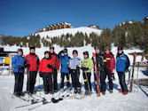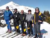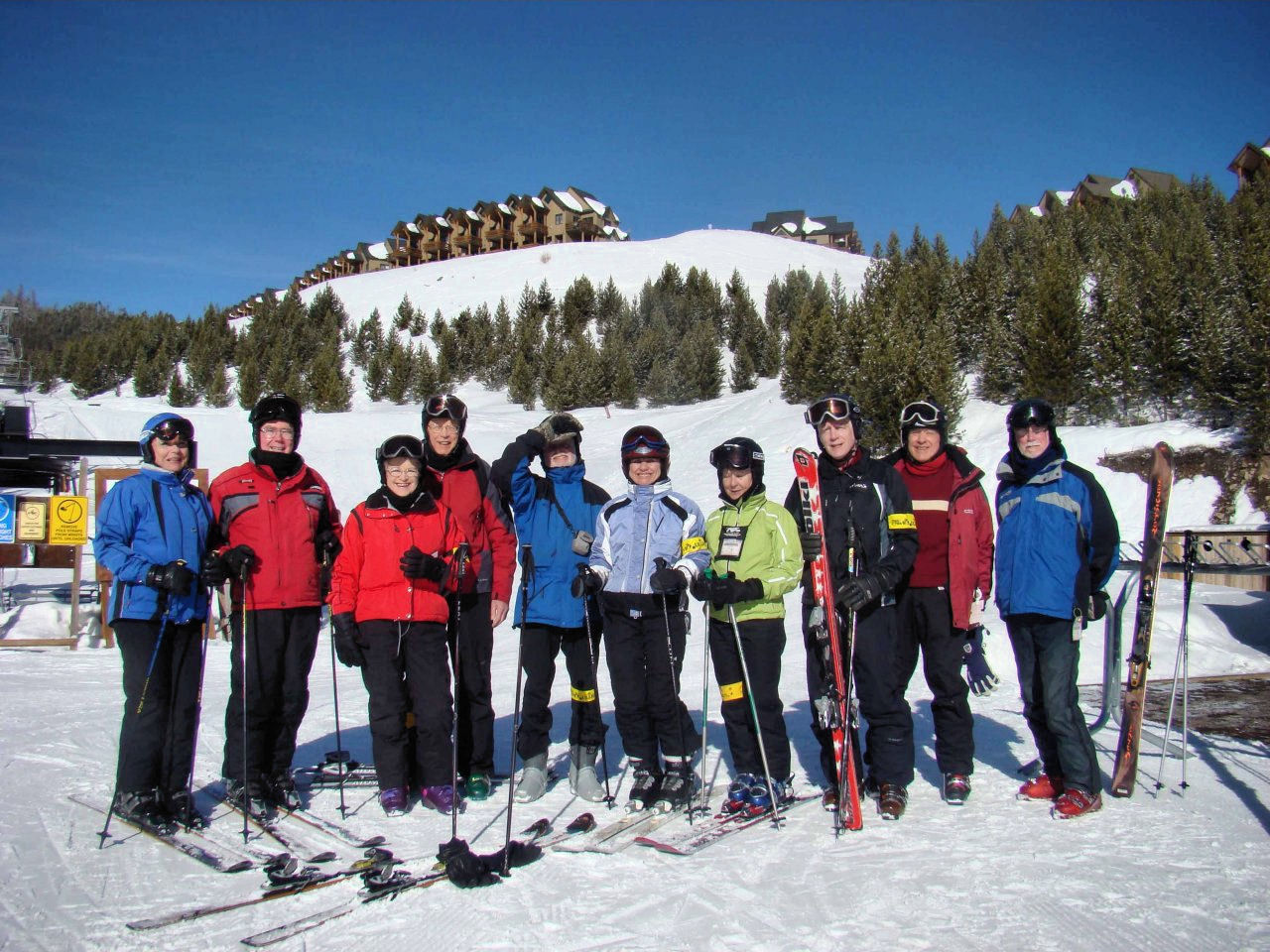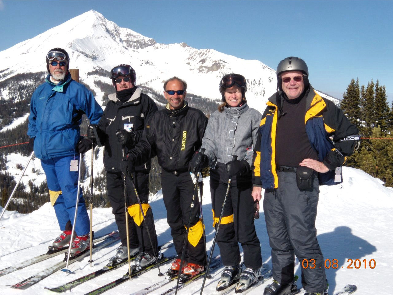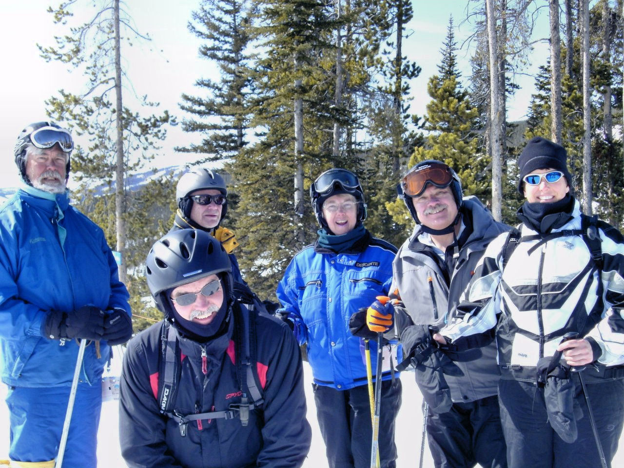 Mountain managers from both ski areas greeted us at our Welcome Pizza Party at our Big Horn condos upon arrival. Name tags help us learn the new faces. However, as our week progressed nicknames stuck - like Bode Miller (Jim H), Alberto Tomba (Lee E), Jean Claude Killey (Bruce W), Lindsey Vonn (Nancy H), Peekabo Street (Sylvia S), and the Studettes. Lone Mountain Peak was a trip highlight at 11,000+ ft with a memorable gondola ride from which we took movies of Smoking Joe skiing down its double black face, WOW! Runs like Grizzley, Challenger, the Bowl, and Liberty each produced special memories/adventures. We are happy to note no one reported a ski injury, but one finger was stepped on by a stocking foot at the Leftover Party.