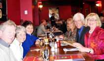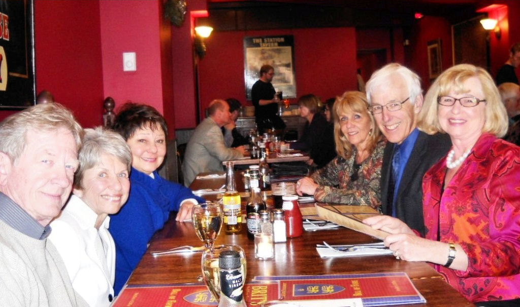 We started off at Brit’s for dinner. While Brit’s has a sign at the door that says, “If you think that you have a reservation, you’re in the wrong restaurant,” we did have a reservation and we were at the right restaurant. General Manager Shane Higgins agreed to have space for us if we would arrive at 5 pm. Would we? Oh, yes, we would and we did! The food and drink were great, and we enjoyed a wide variety of menu offerings - fish and chips, chicken pot pie, shepherd’s pie to name just a few. And, as an extra treat, ULLR Prez Diane Erlandson celebrated her birthday with scrumptious chocolate cake topped by a birthday candle.