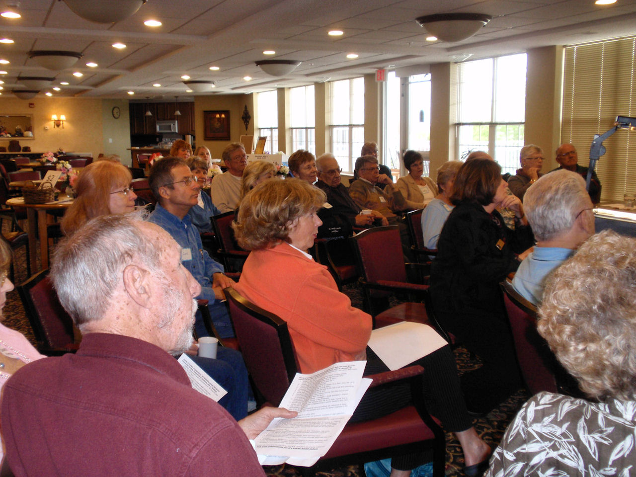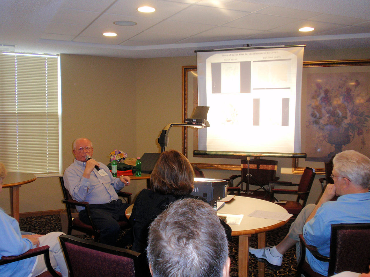 About thirty ULLRs celebrated May Day by attending a slideshow presentation on the Dead Sea Scrolls and then going to the Olive Garden in Burnsville for dinner. ULLR members Gary and Karen Gray showed photos of where the Dead Sea Scrolls were found and provided information about their preservation, the meaning of words on the scrolls, and the historical and religious significance of the scrolls. Gary also displayed a number of excellent books on the Dead Sea Scrolls.