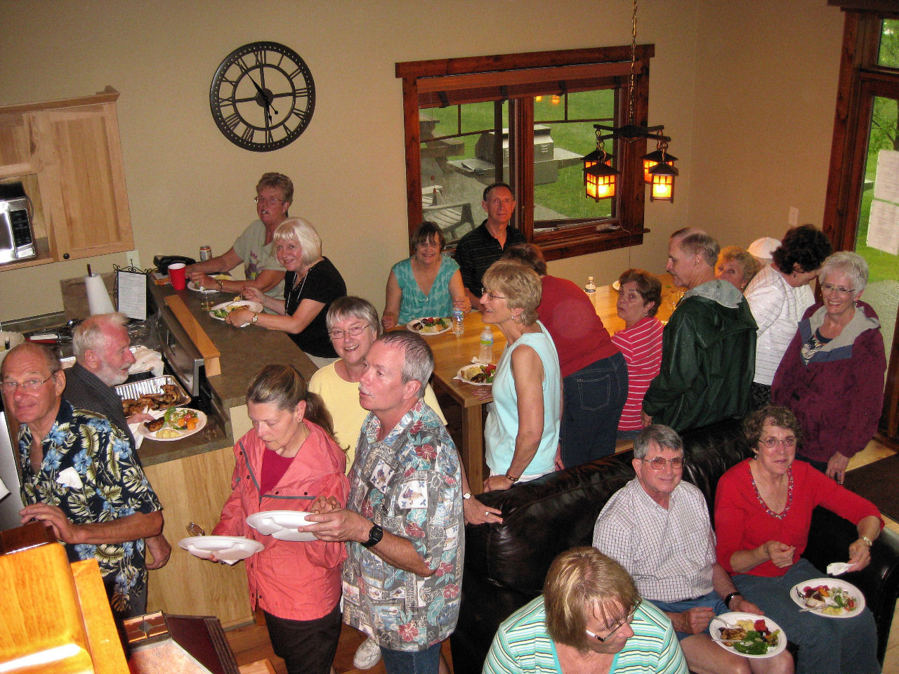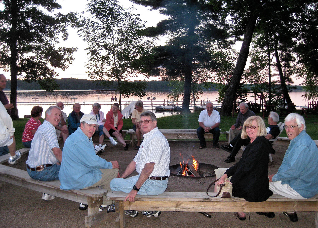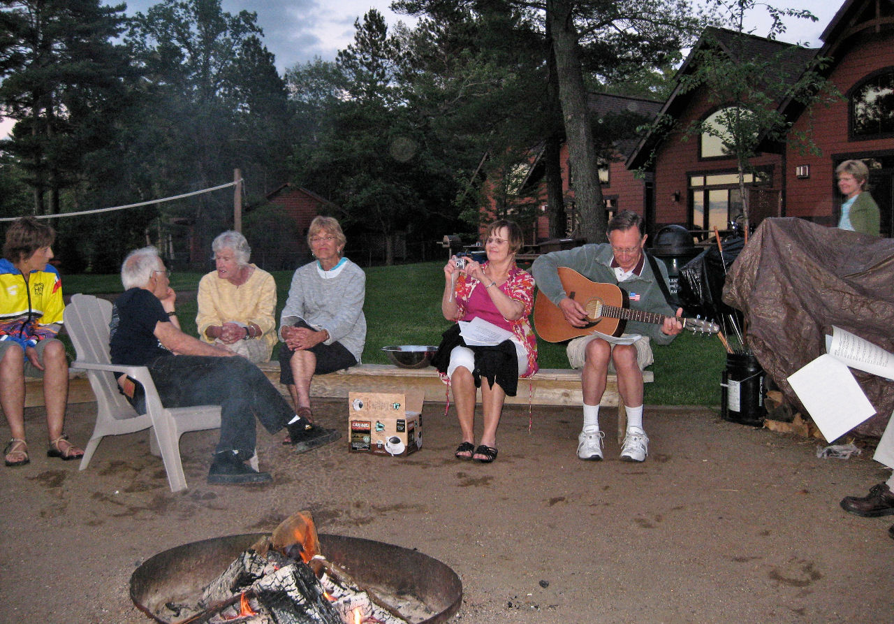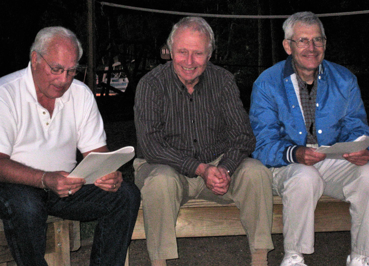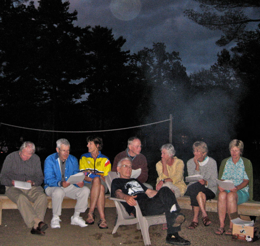 We are also thankful for all the helpers who set up, prepped, served, supervised, cleaned up, hauled and scooped (ice cream). Special recognition goes to Tom R, JJ and Bob S for braving the rains to grill our chicken, and to Dick D who led us with his guitar in a sing-a-long ‘round the fire pit Wednesday night.