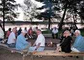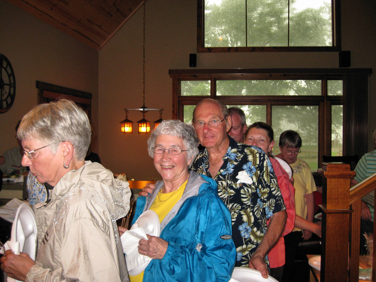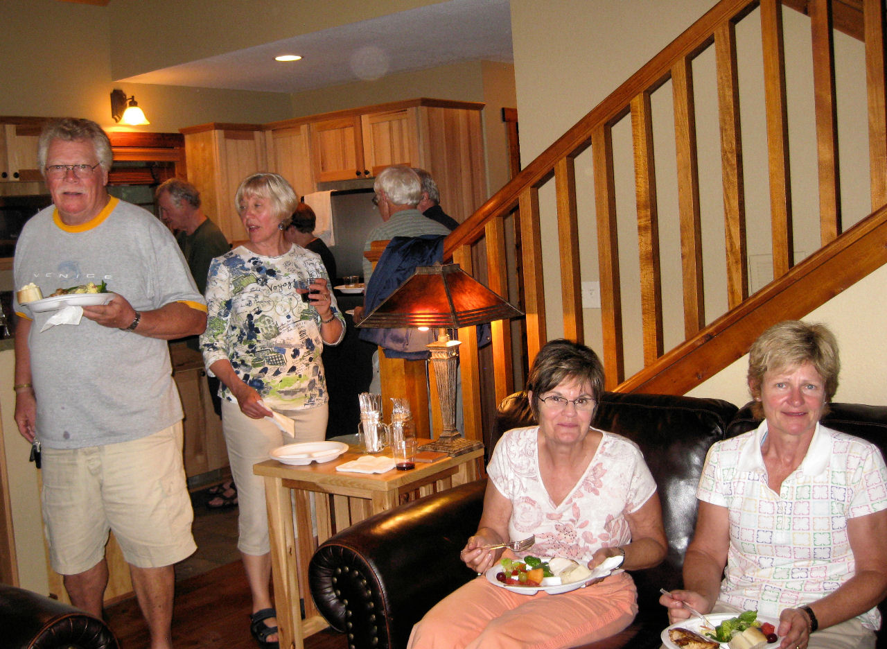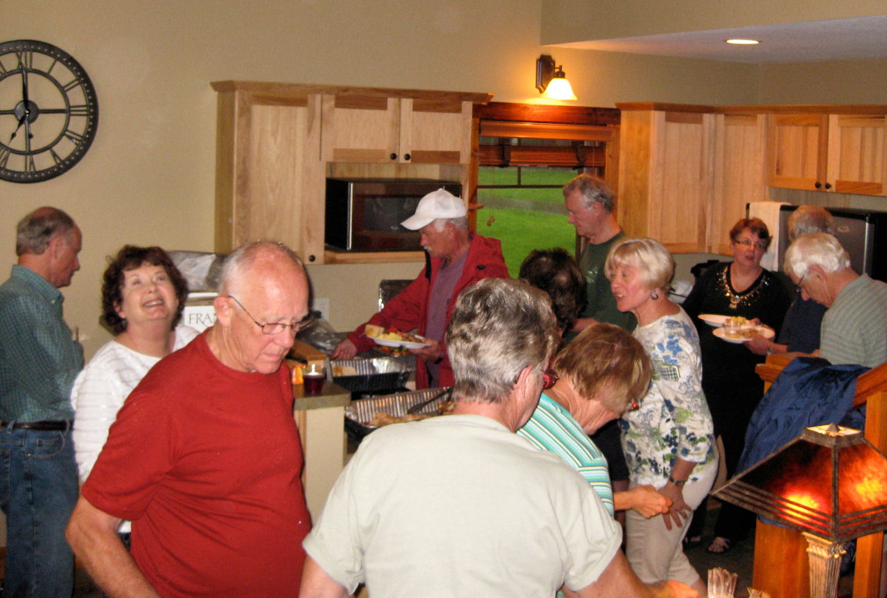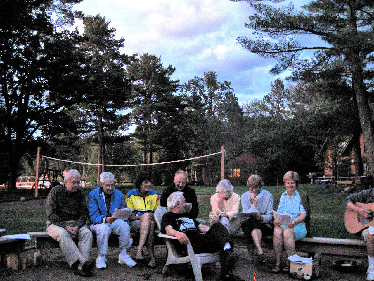 We are also thankful for all the helpers who set up, prepped, served, supervised, cleaned up, hauled and scooped (ice cream). Special recognition goes to Tom R, JJ and Bob S for braving the rains to grill our chicken, and to Dick D who led us with his guitar in a sing-a-long ‘round the fire pit Wednesday night.