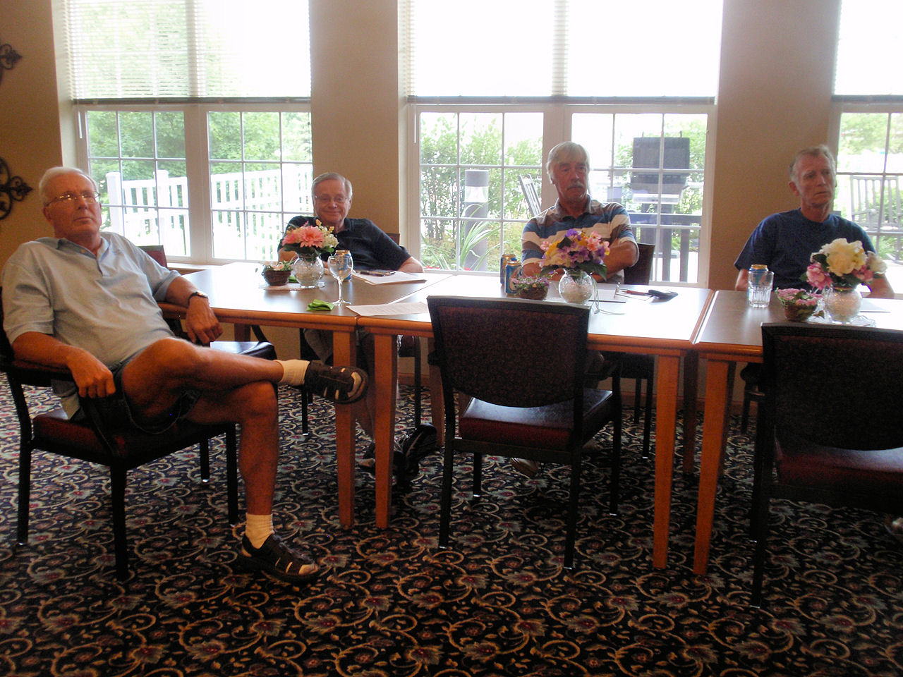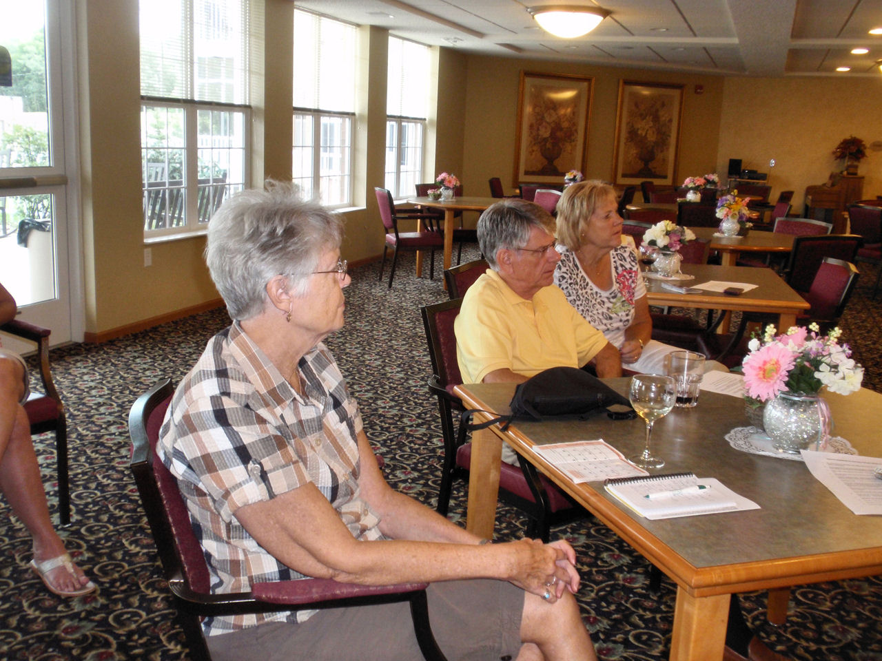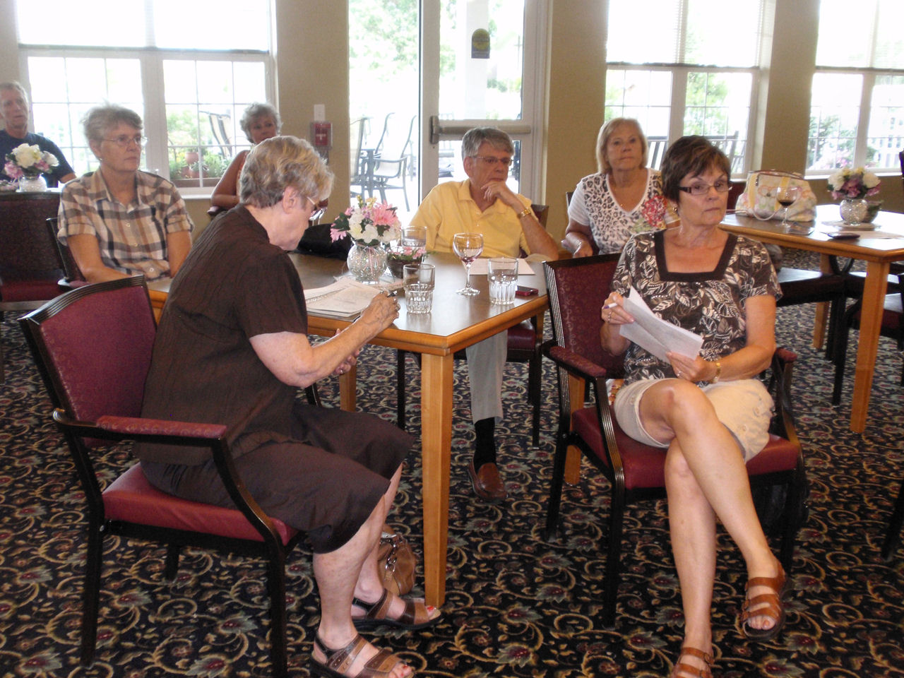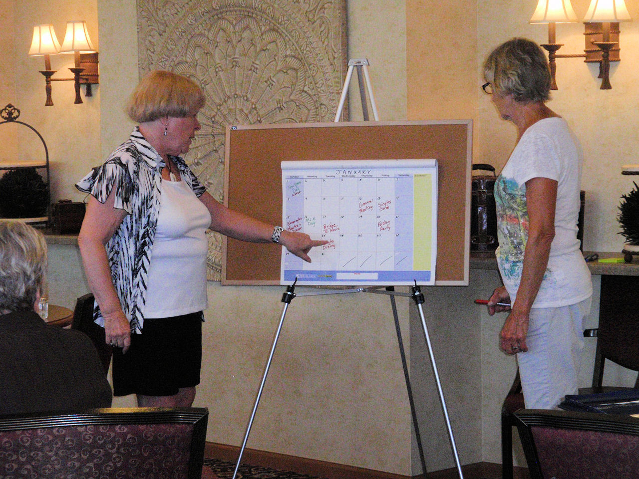 After the calendar was filled with activities, we enjoyed brats and beverages and many salads and desserts. Nancy treated us with her famous Brandy Alexanders.