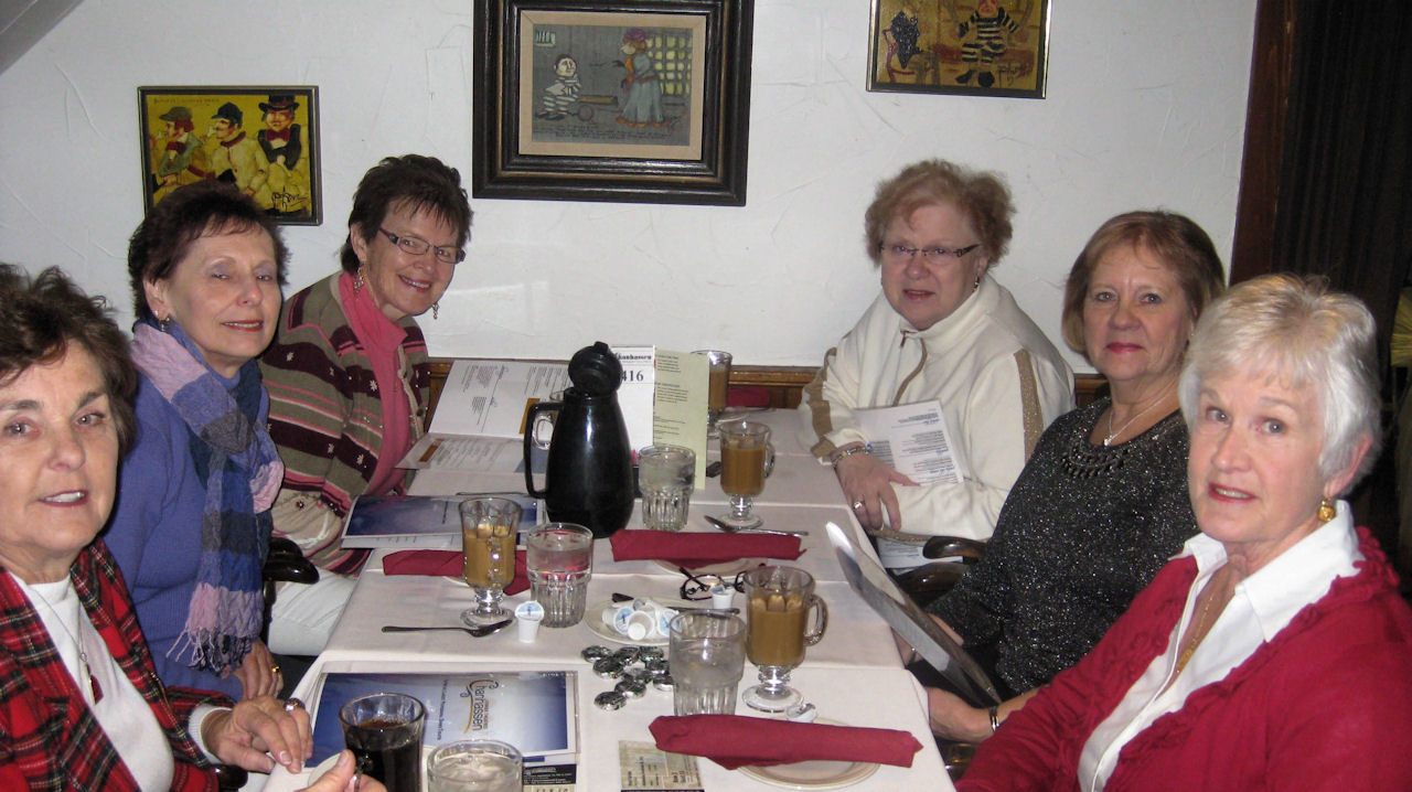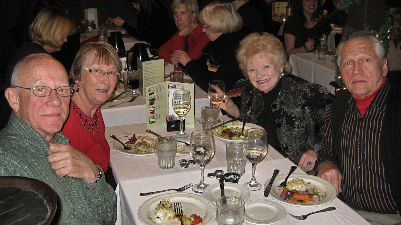 Twenty two ULLRs gathered for a fine afternoon at the "most successful dinner theatre in the country"! The Chanhassen's holiday show - "Plaid Tidings"- was a creative, energetic combination of comedy, great harmony from four excellent singers (the Four Plaids) and the nostalgia of traditional Christmas carols as well as a review of old black & white TV Holiday specials.