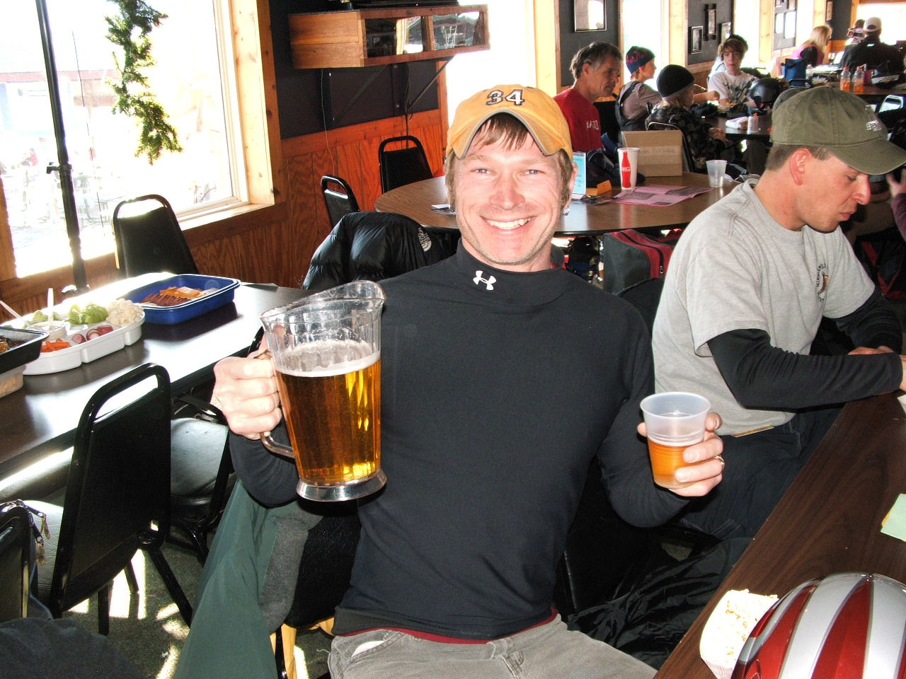 After the first race I saw Joe caring a glass of beer to the team