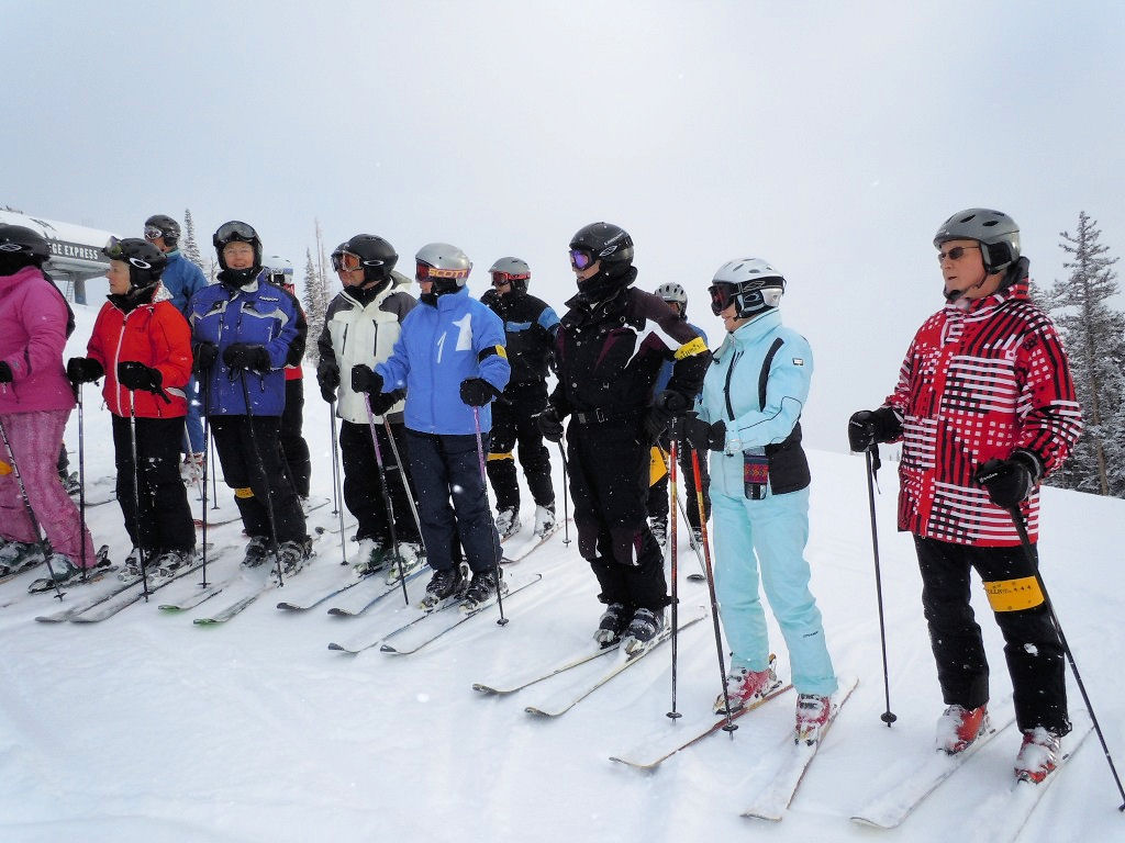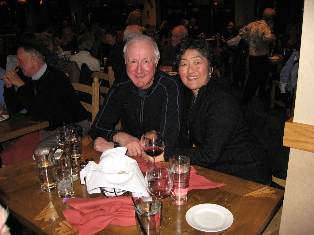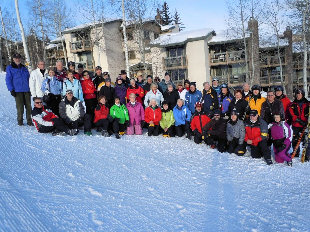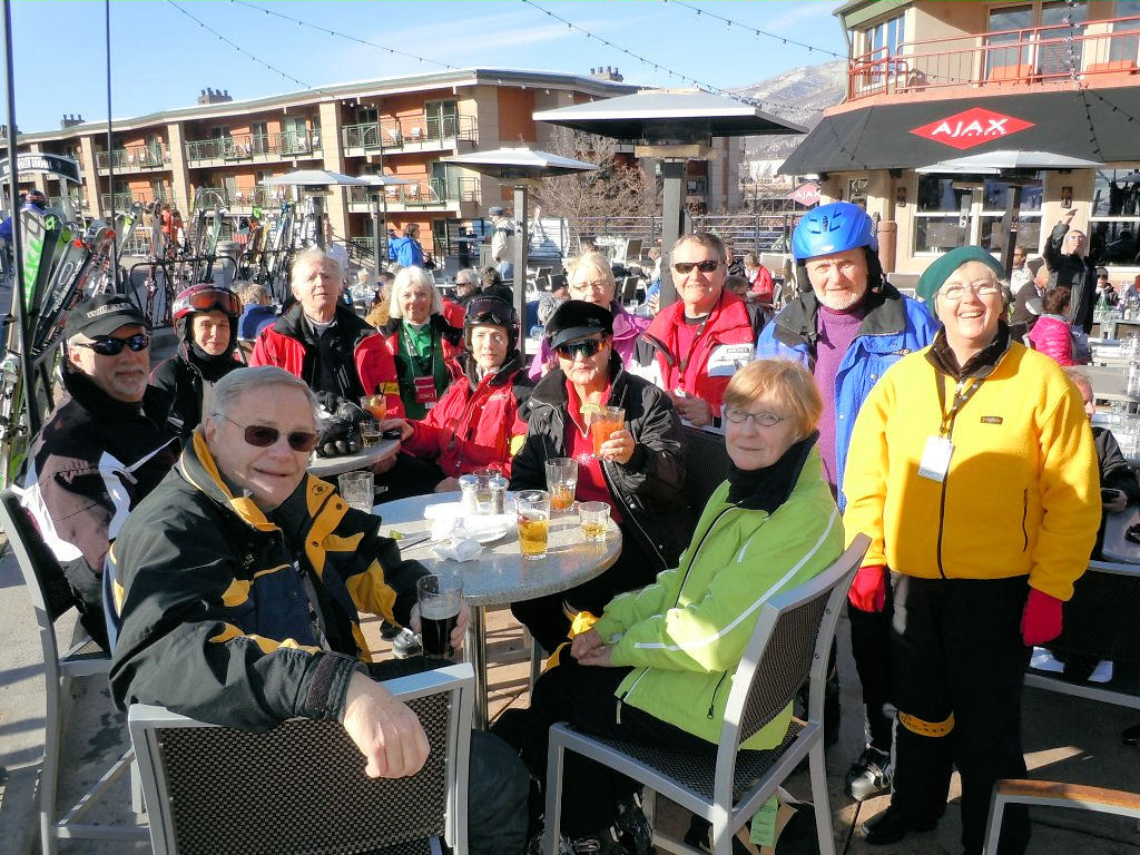 On Thursday morning 29 of us got up early for First Tracks. We split up among three mountain pro guides to ski groomed runs, powder runs and the Powerline Glades (powder-covered bumps and trees). It was a “mountain high” to get out before everyone else does, especially with 6-8 inches of fresh powder! On Friday, Joe B. and Nancy H. went to the Highlands where they carried their skis on their backs, hiked up to Highland Peak (12,400’) and skied the 45 degree steep Highland bowl!