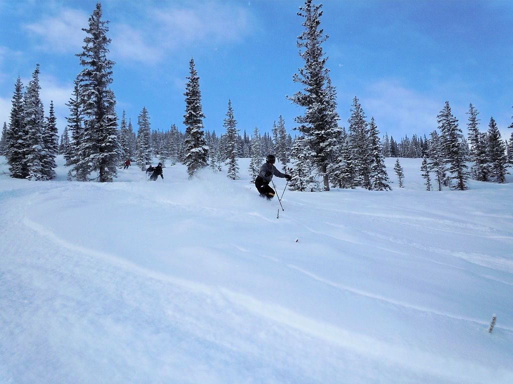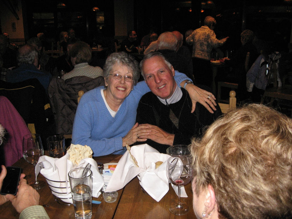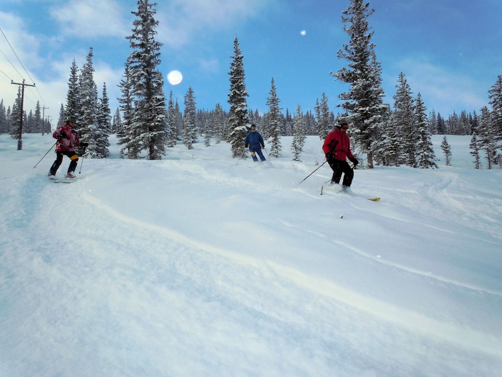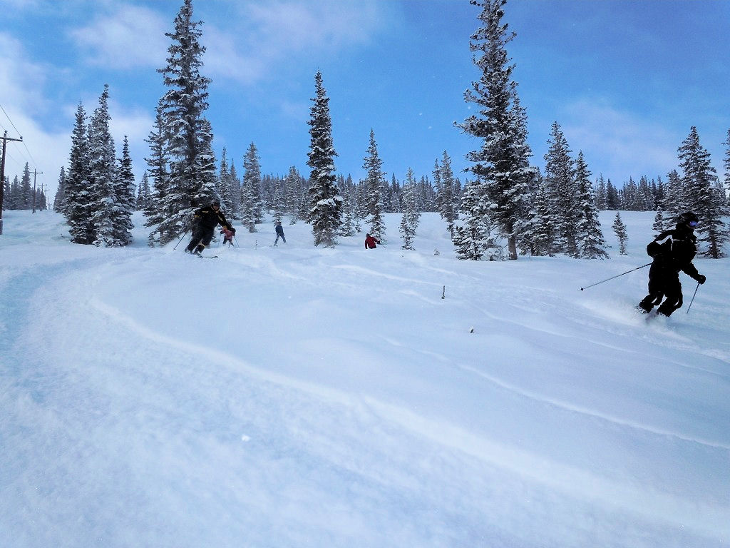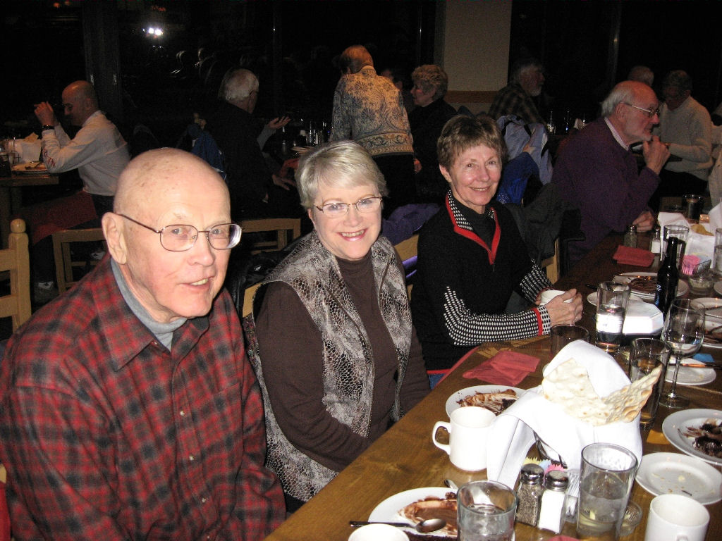 On Thursday morning 29 of us got up early for First Tracks. We split up among three mountain pro guides to ski groomed runs, powder runs and the Powerline Glades (powder-covered bumps and trees). It was a “mountain high” to get out before everyone else does, especially with 6-8 inches of fresh powder! On Friday, Joe B. and Nancy H. went to the Highlands where they carried their skis on their backs, hiked up to Highland Peak (12,400’) and skied the 45 degree steep Highland bowl!