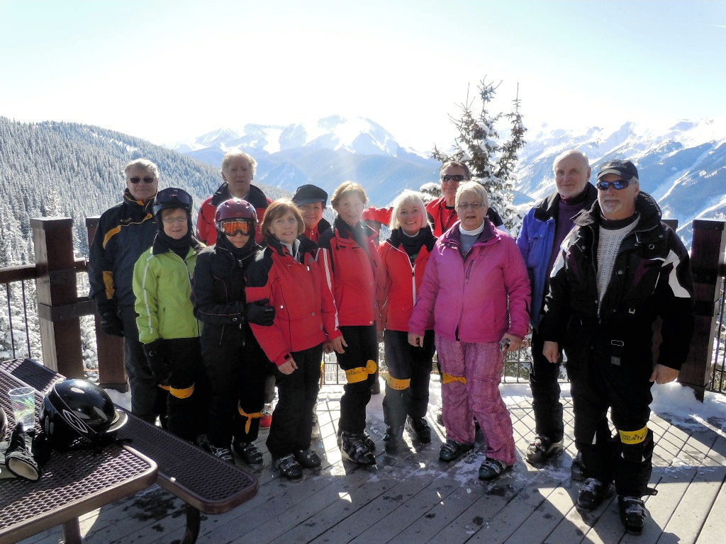48 ULLRs left for a 7 day trip at Snowmass on Saturday, February 4. We flew to Denver via Southwest out of the Humphrey terminal – much less hassle and no baggage fees – yea! The bus ride from Denver provided time to get to know each other (we had quite a few new members), enjoy the beautiful scenery, grocery shop in Eagle, and eat a really good bag lunch. Our condos – the Top of the Village (TOV) – proved to be very spacious, nicely furnished with great views of Snowmass and were right on the ski run down to the six-pack chair lift.