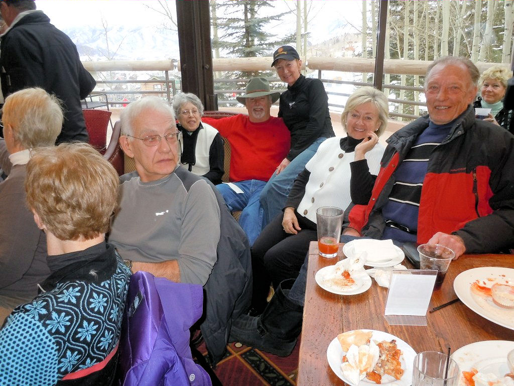 We had opportunities for the group to get together other than skiing: The first night traditional welcome wine, cheese, pizza and salad party in the TOV Gaterooom. Sunday’s Super Bowl party in the Gateroom. Après ski at the Aspen Tavern and at Snowmass’ Silvertree lounge where we laughed and listened to the fun western songs of Twirp Anderson and his three piece band (they use to travel with John Denver).