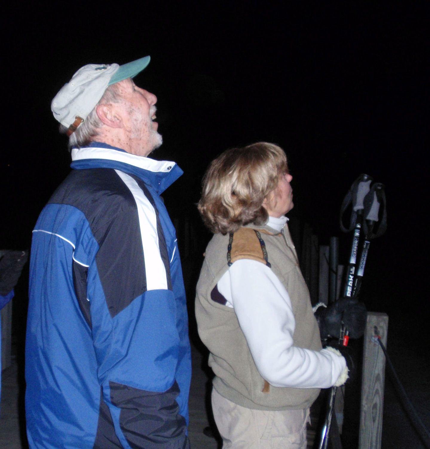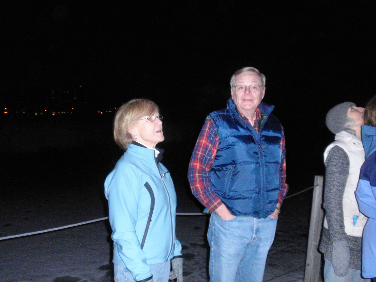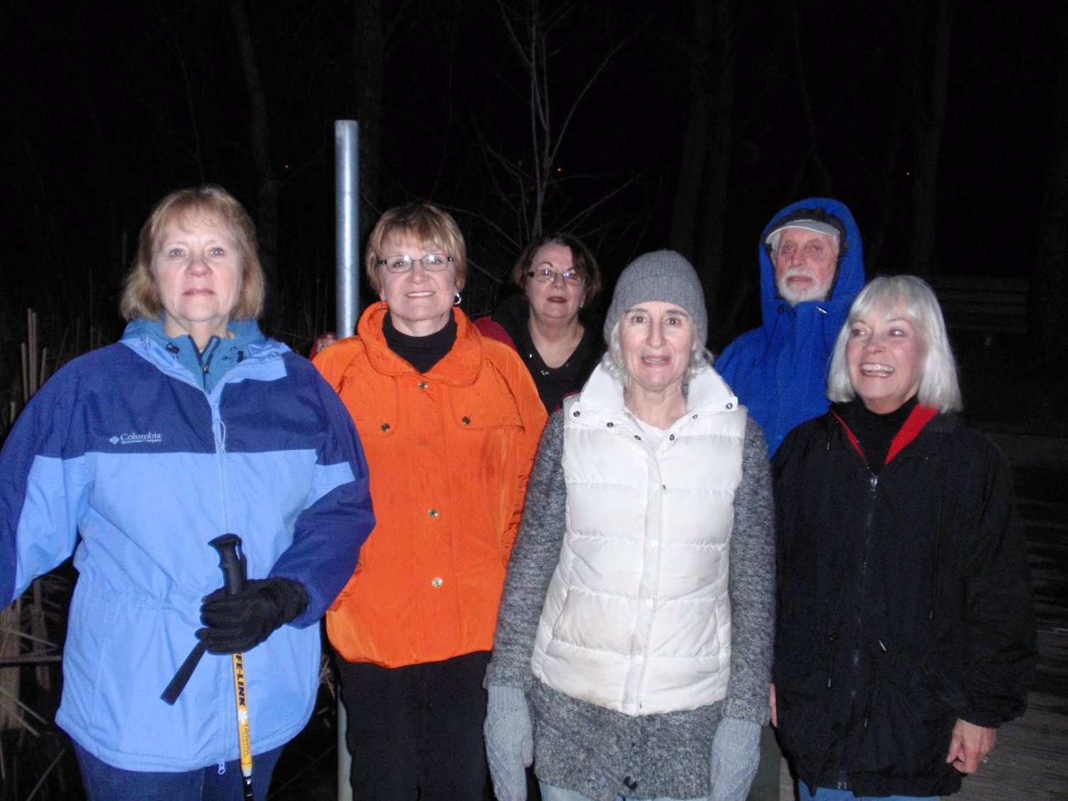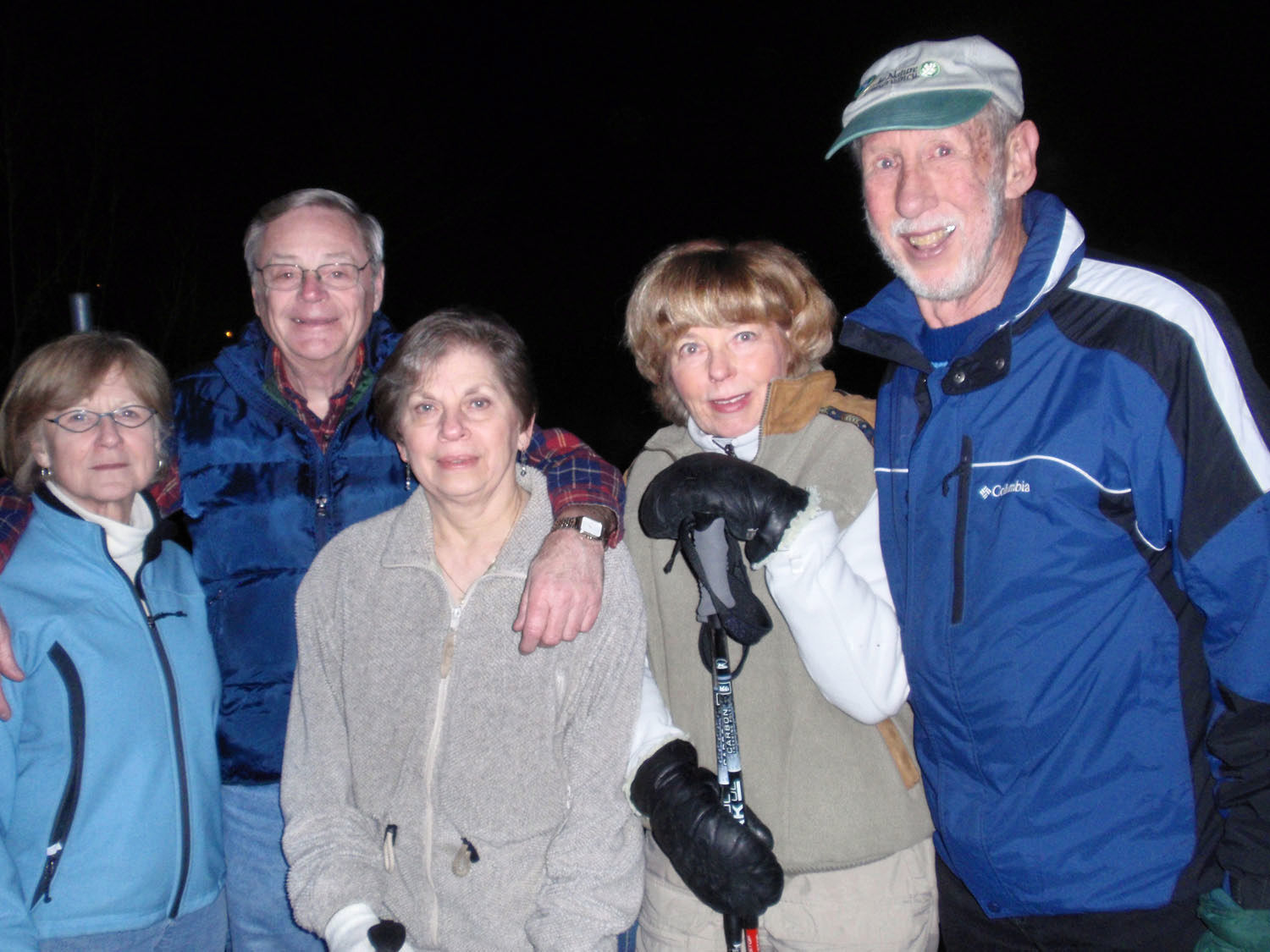 Because of the warm weather we left our skis and snowshoes home and were rewarded with clear skies, a view of three of the four visible planets, and a few constellations. The warm weather also left a few puddless on the trail but everyone managed to stay dry.