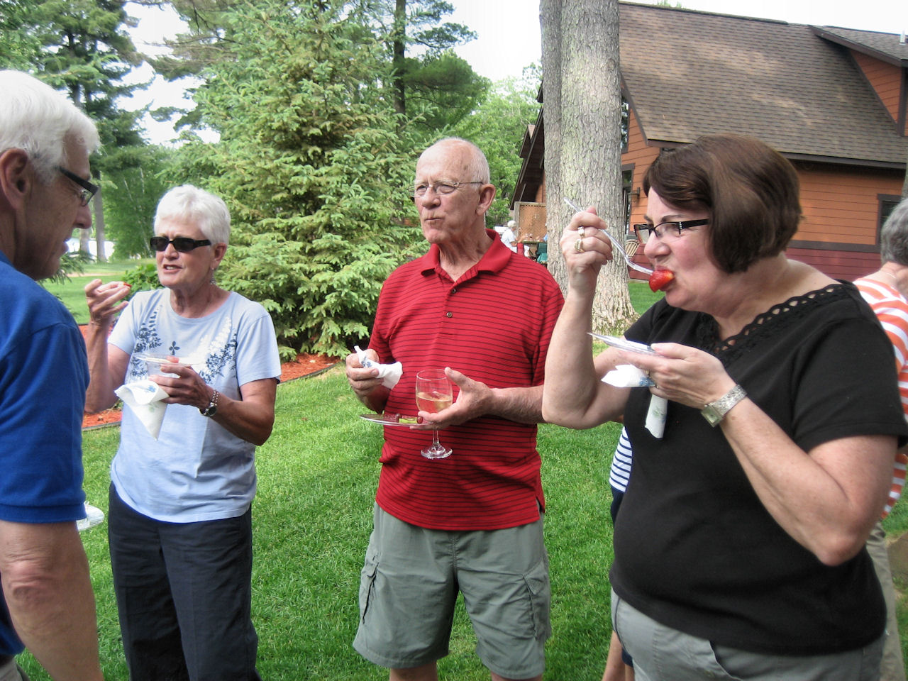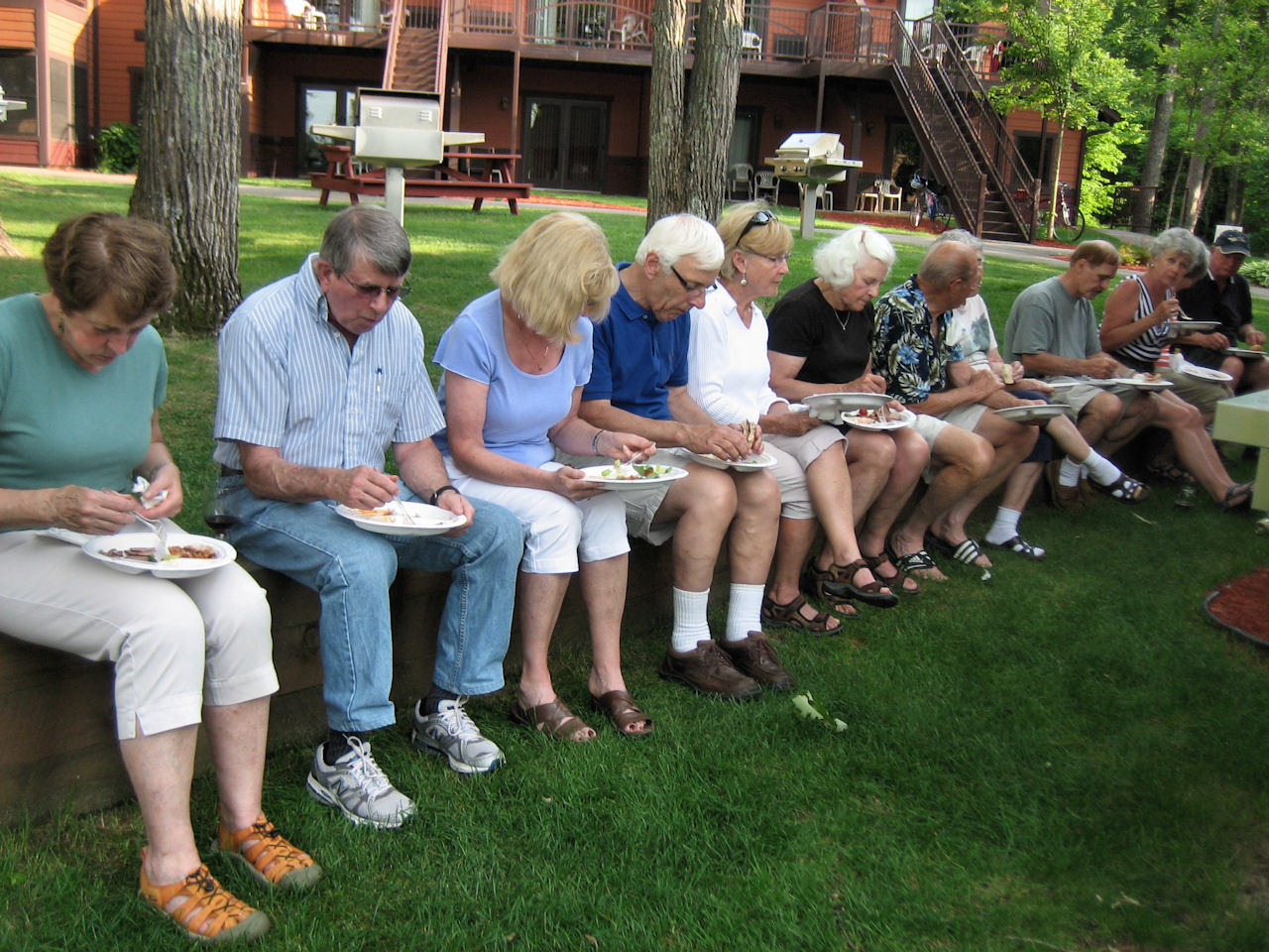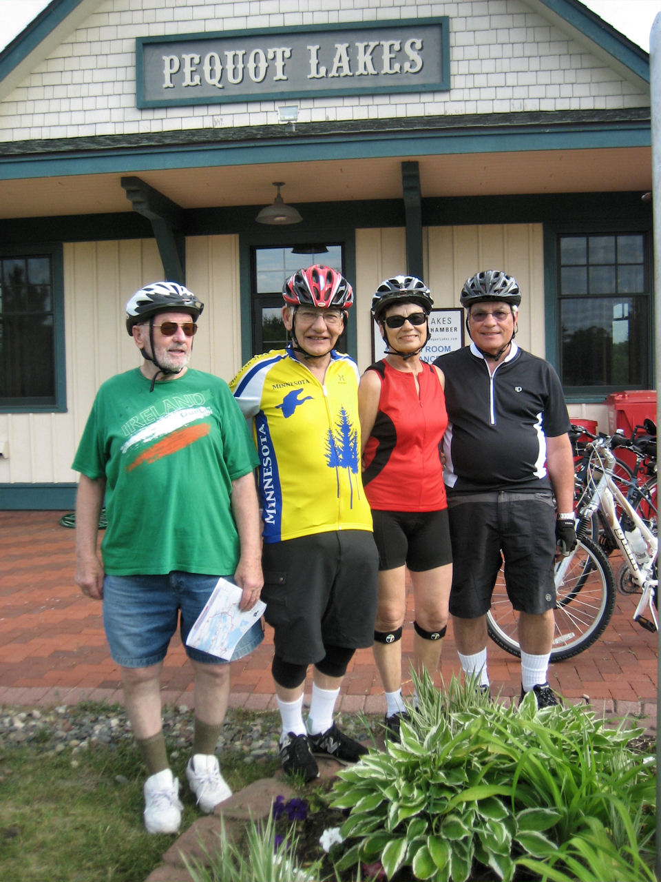 The weather was perfect except for a short little rain Wednesday evening. Some people biked Wednesday after they arrived, most biked Thursday and a few biked on Friday. Miles covered on Thursday ranged from 10 to over 60. The bakery in Pine River was a favorite. Three ladies took a dip in the crystal clear water of the lake. We had a bonfire each night.