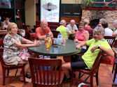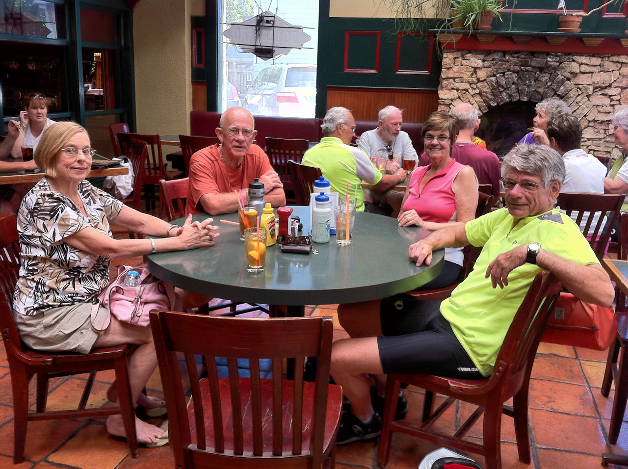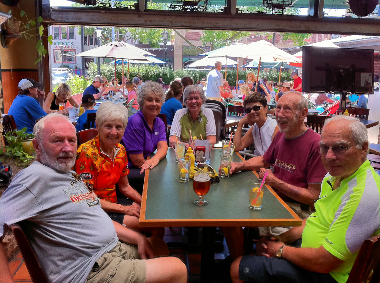 By the time our group arrived back at the Falls, the trails and street lanes were VERY crowded with bikes and riders of every description. These dangerous conditions led to the only accident/injury we had on this year's ride. One biker, paying no attention and riding in Karen's lane, going the opposite direction, crashed into our fearless leader, causing her to fall. Karen was able to finish the ride, but with scrapes and bruises, and a very sore body. This led to our vow to not run this trip on weekends anymore, but we will continue to run the great annual Chocolate Lovers' Ride in the future and during weekdays. We hope you will join us next year!
