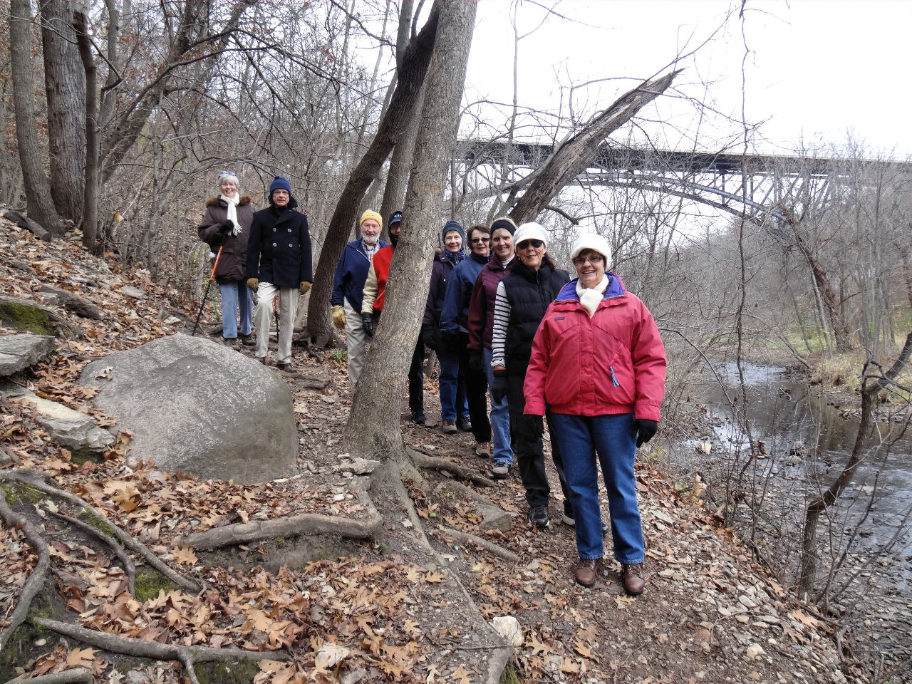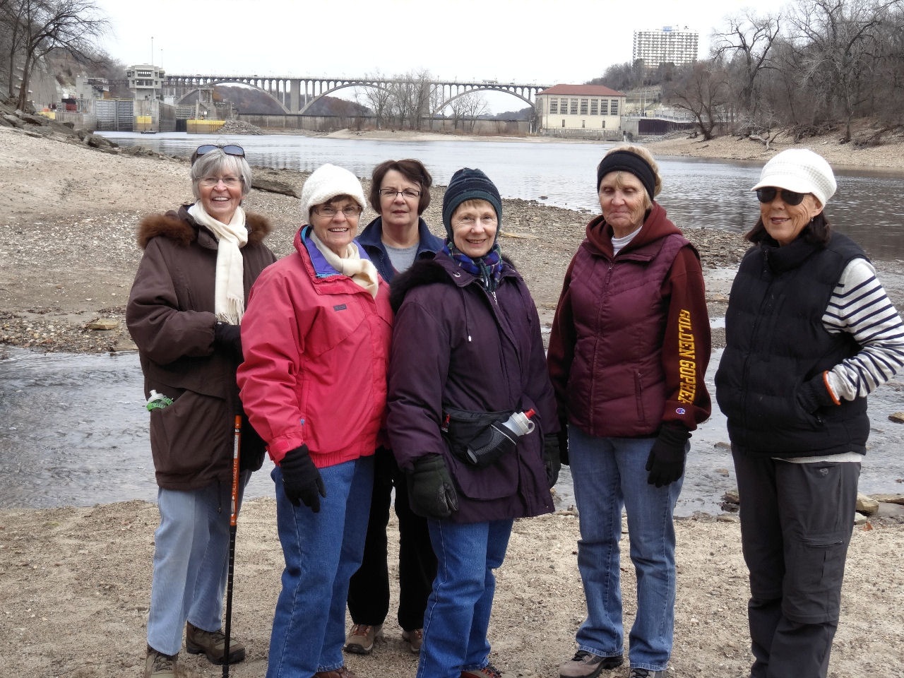 Karen, Patty, Linda, Sharon, Robin with Ford Bridge in the background