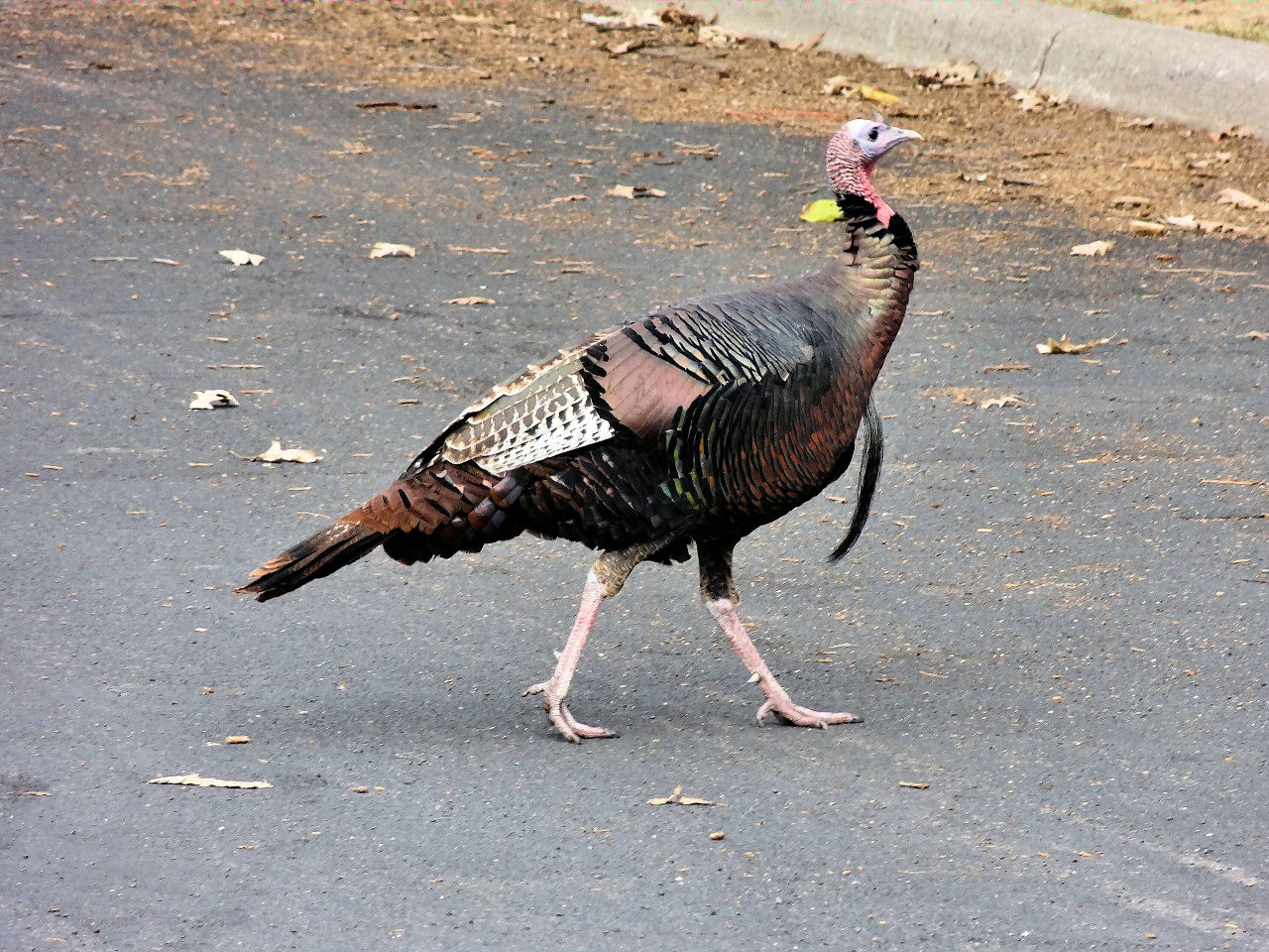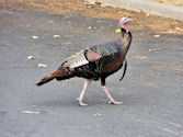 coming upon a flock of turkeys strutting alongside the Veteran’s Hospital. The