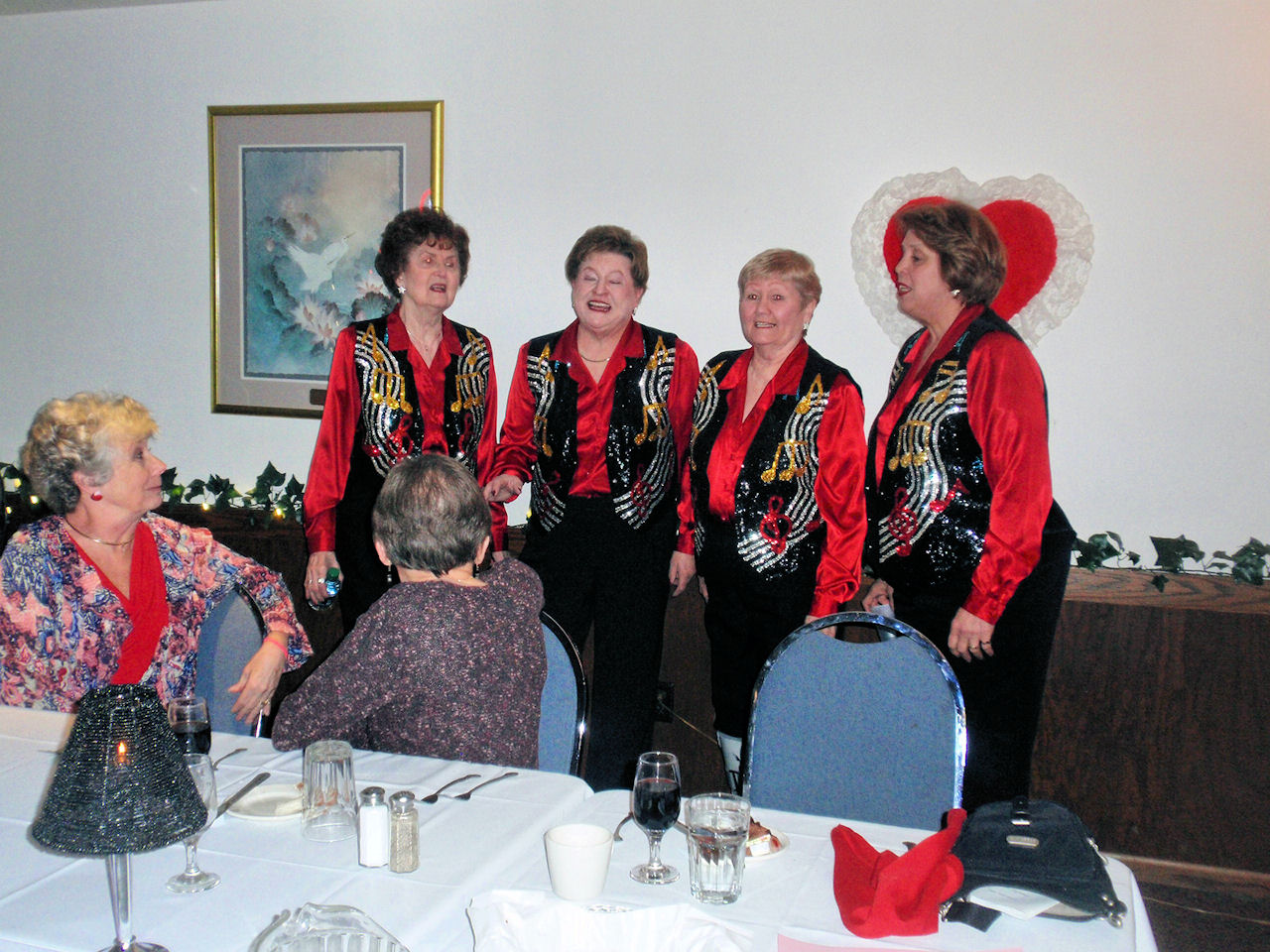 Ken M, Sharon M, Joan R, Charlie B, Patty F, John S | | Carol B, Ray H | | Serenading the ULLR Board in the dining room |