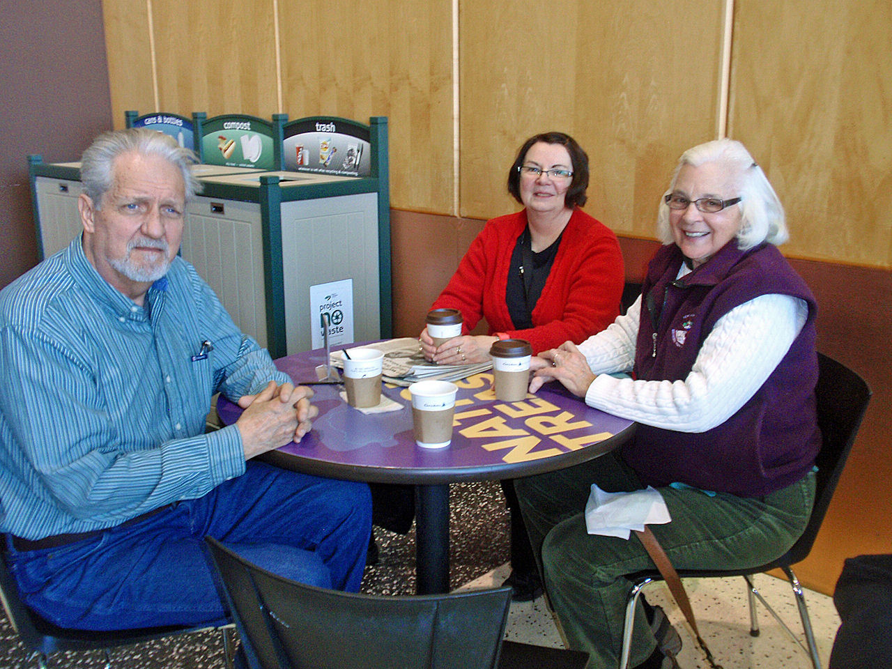 Enjoying coffee and pastry treat Jerry S, Mary B, Brian J |